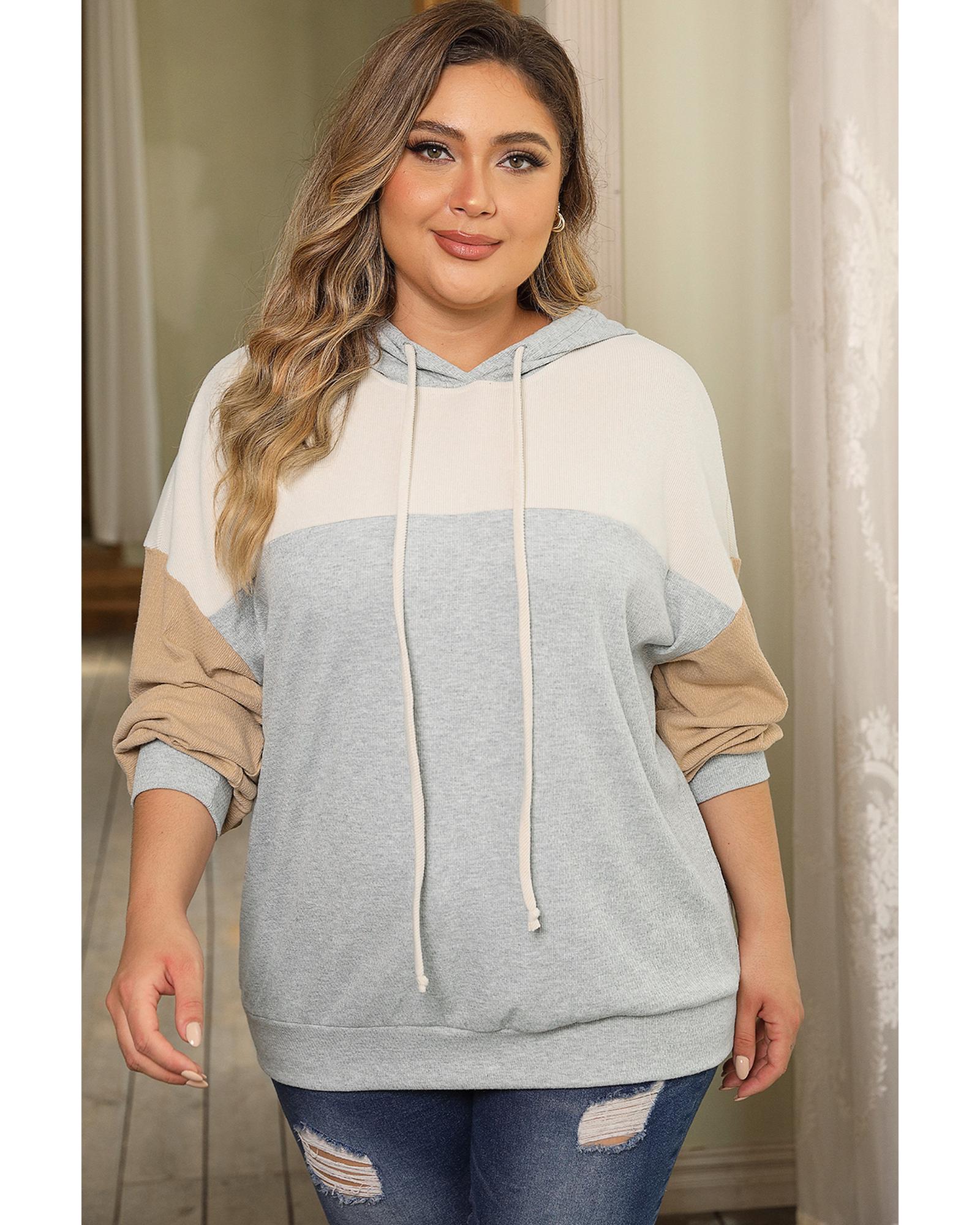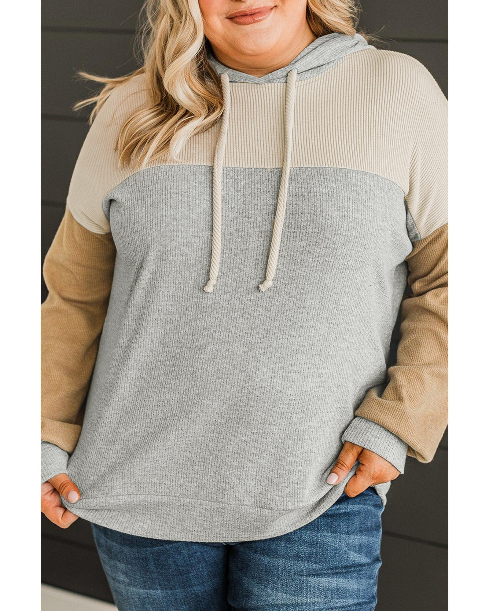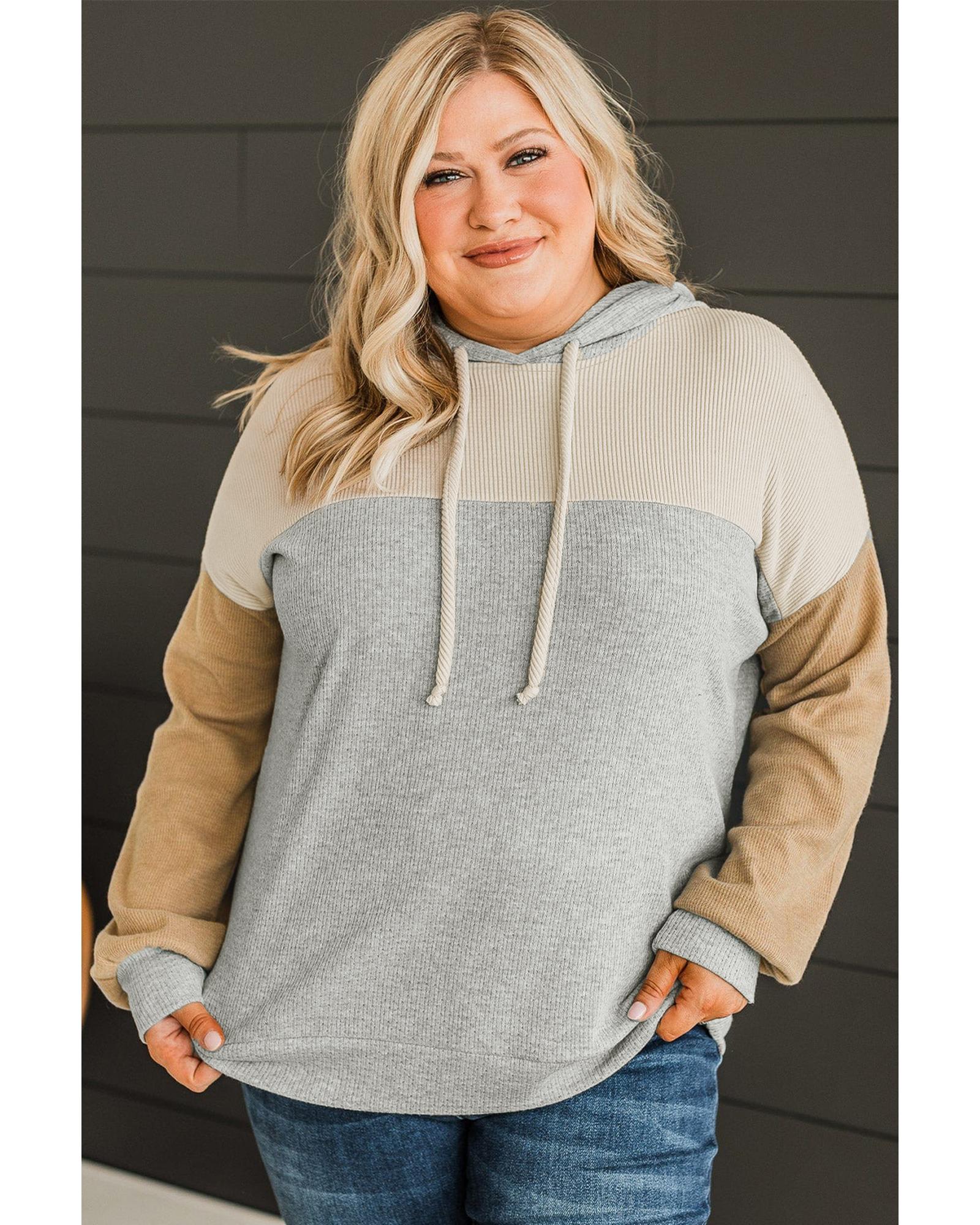 Multicolour Plus Size Colorblock Drop Shoulder Ribbed Knit Hoodie – 1X