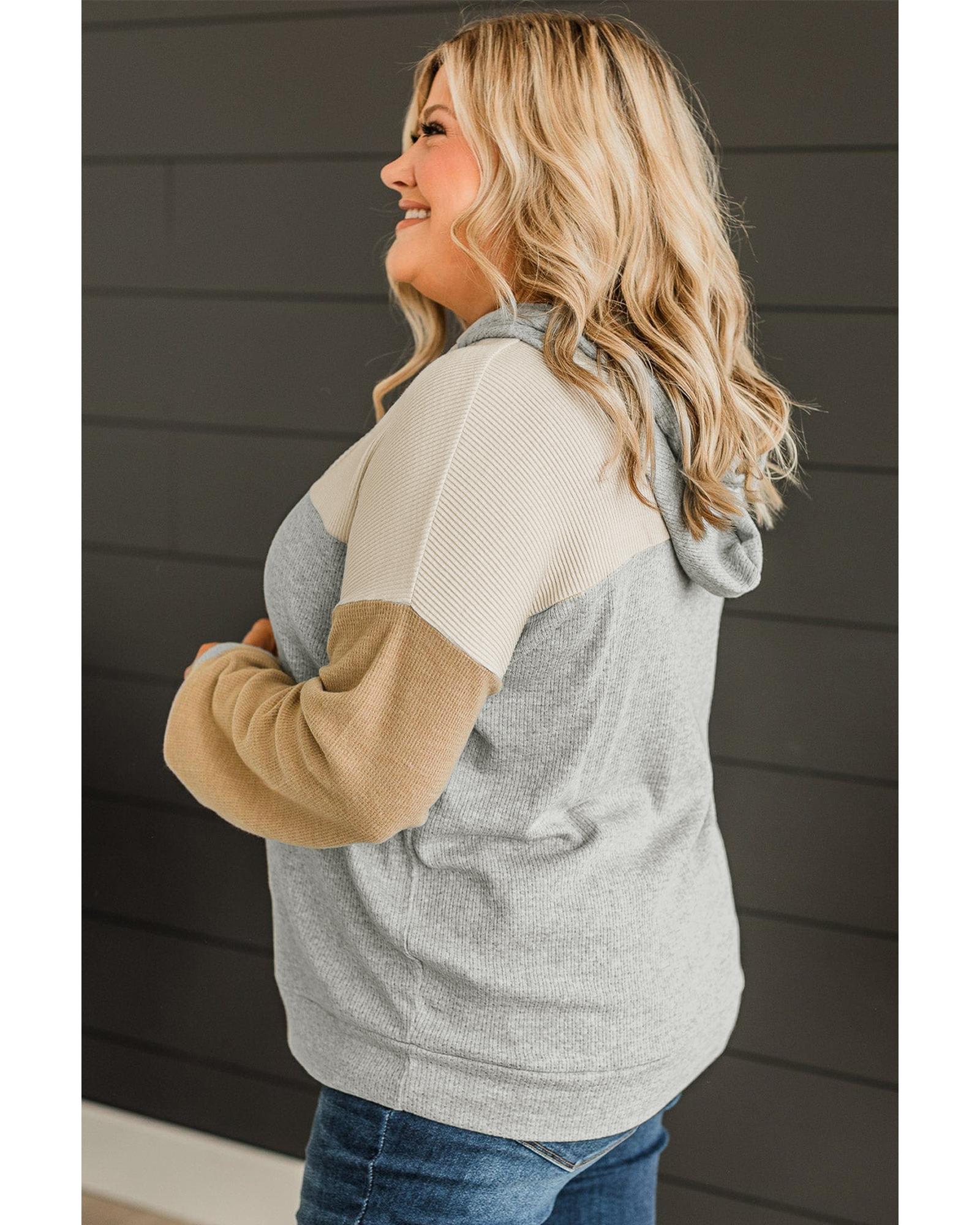 Multicolour Plus Size Colorblock Drop Shoulder Ribbed Knit Hoodie – 2X
