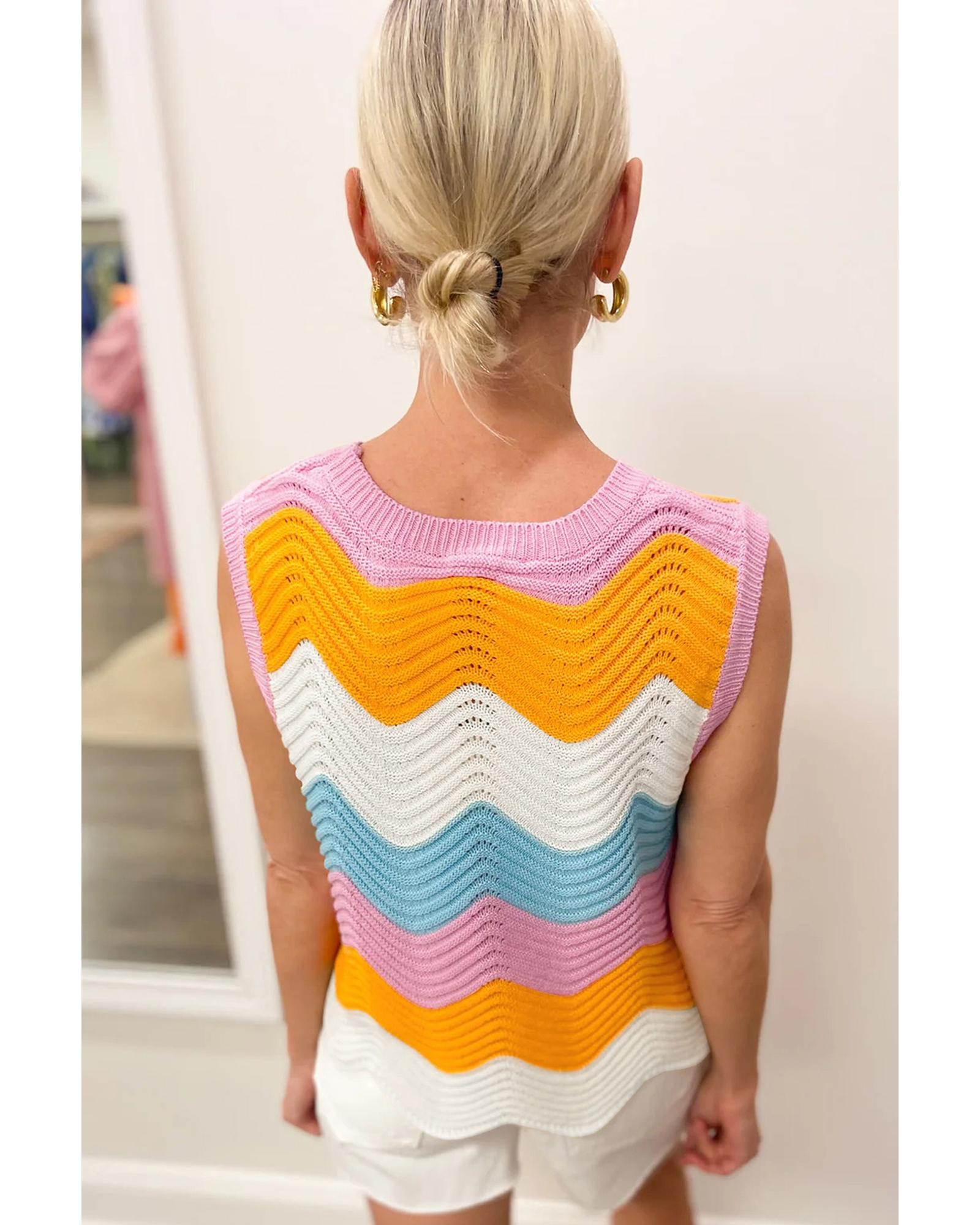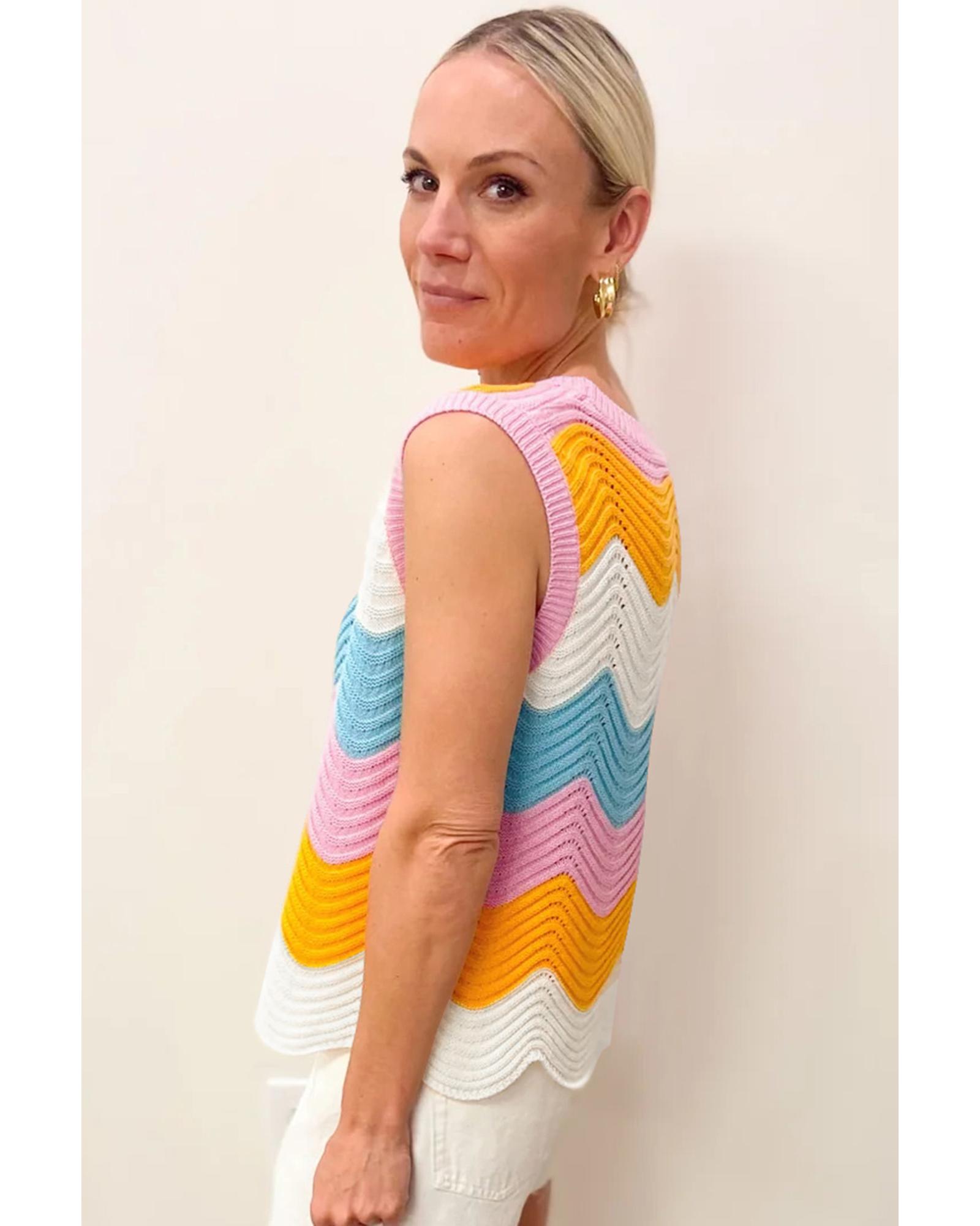 Multicolour Striped Colorblock Scalloped Hem Knitted Vest – S