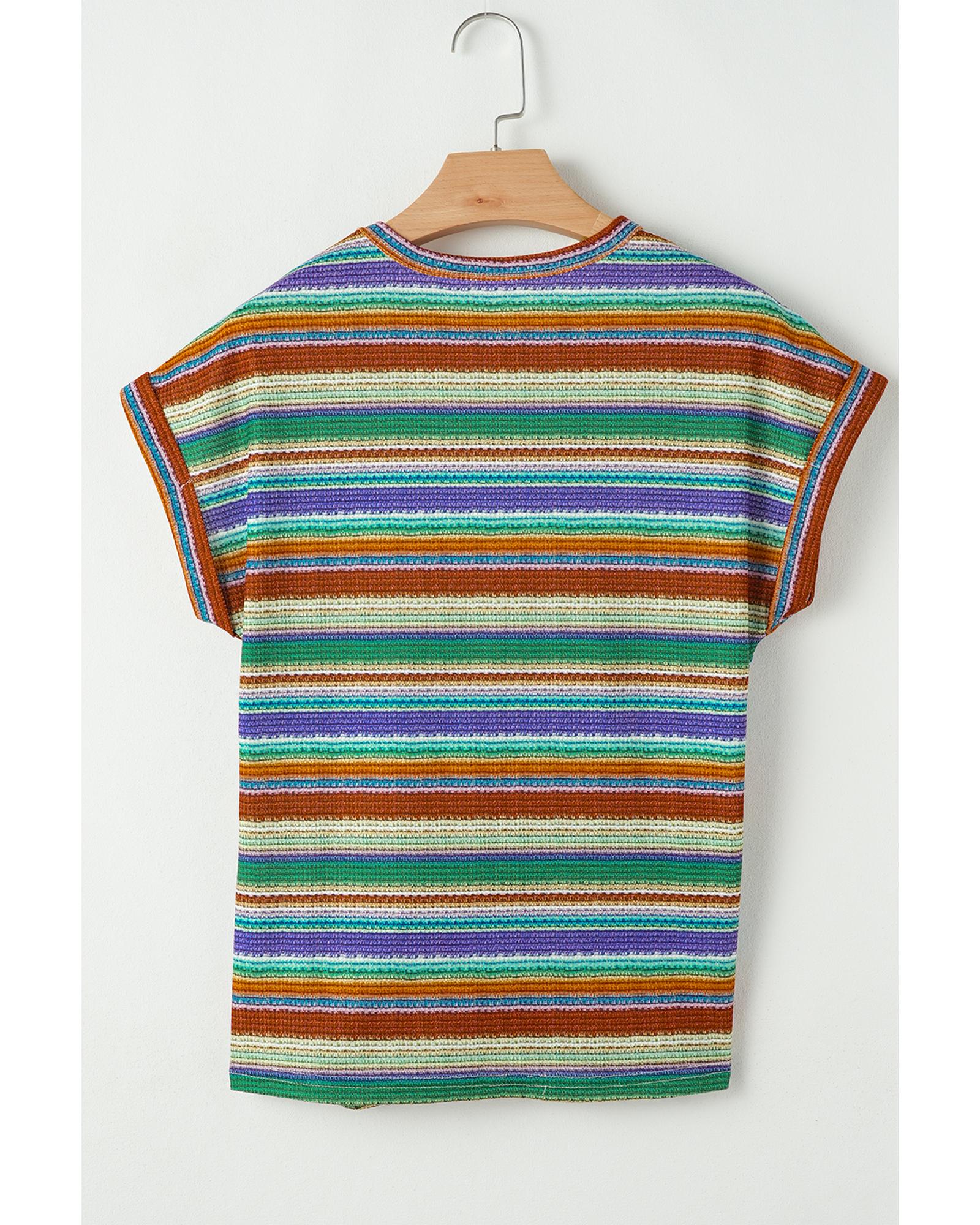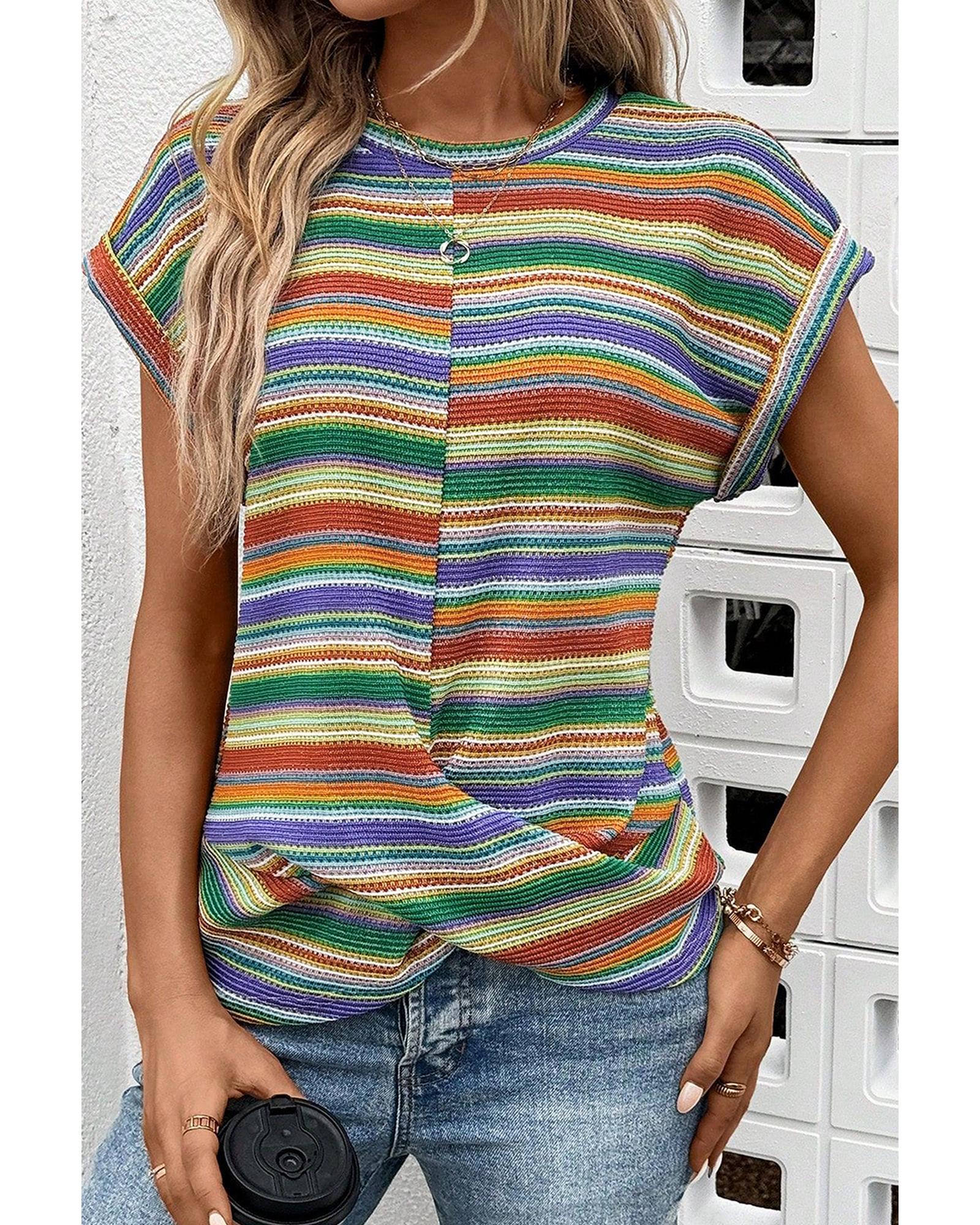 Multicolour Striped Pattern Twist Hem Short Sleeve Top – S