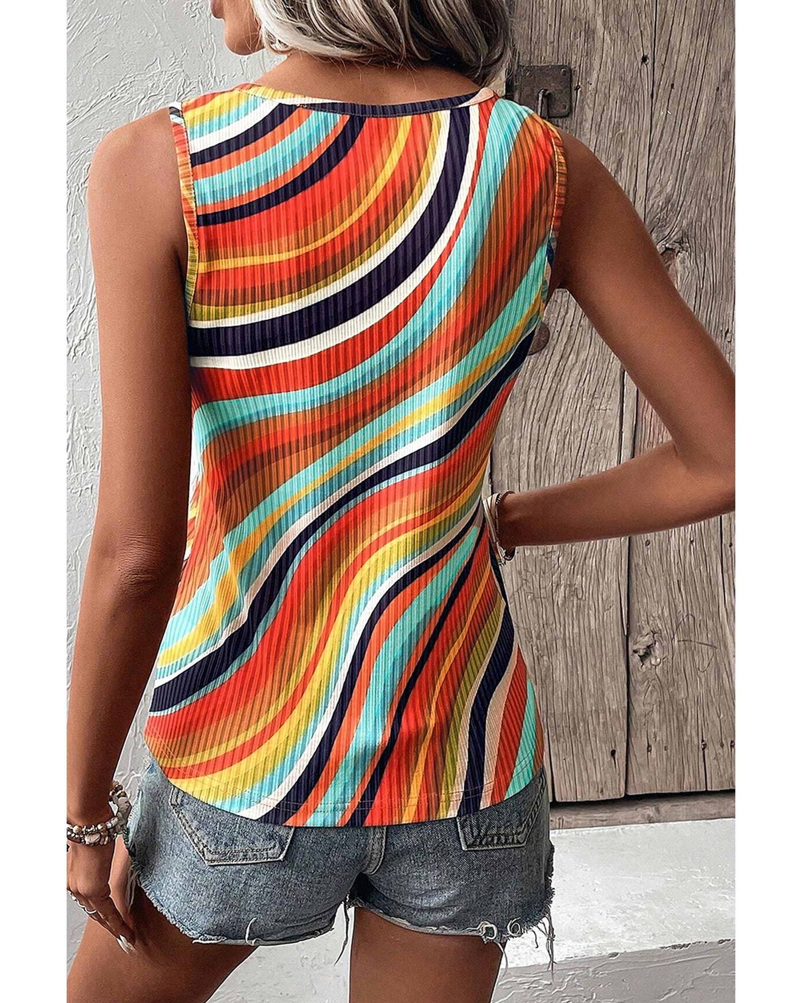 Multicolour Wavy Striped Buttoned V Neck Tank Top – XL