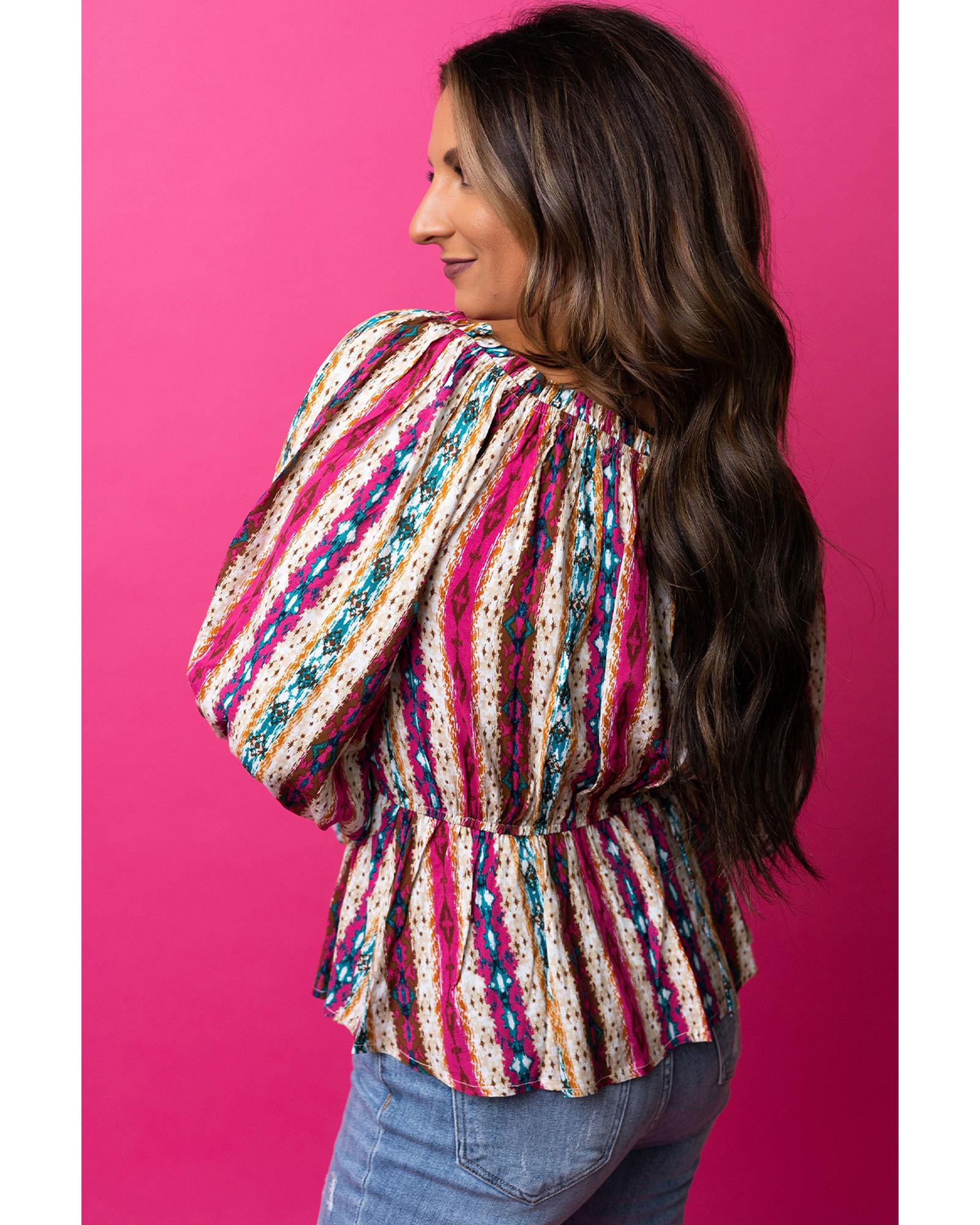 Multicolour Western Aztec Split Neck Peplum Blouse – S