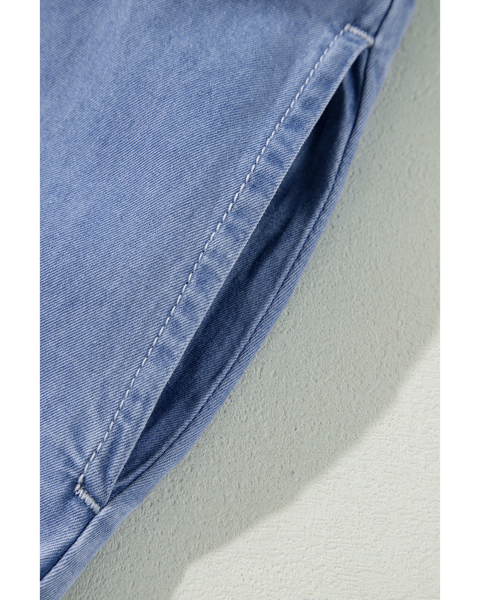 Sail Blue High Rise Dual Button Distressed Raw Hem Flared Jeans - 10 US Original price was: $79.99.Current price is: $43.99.
