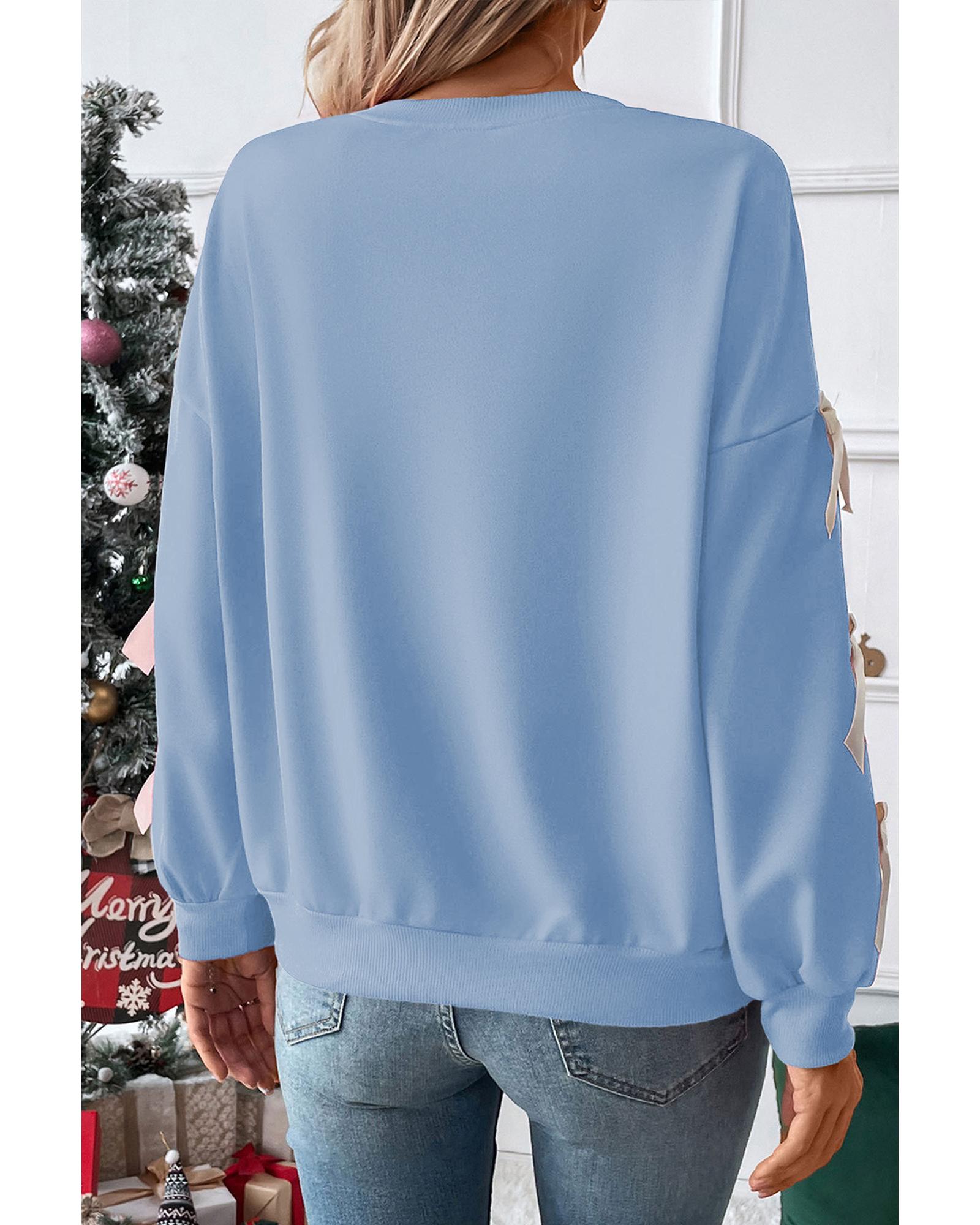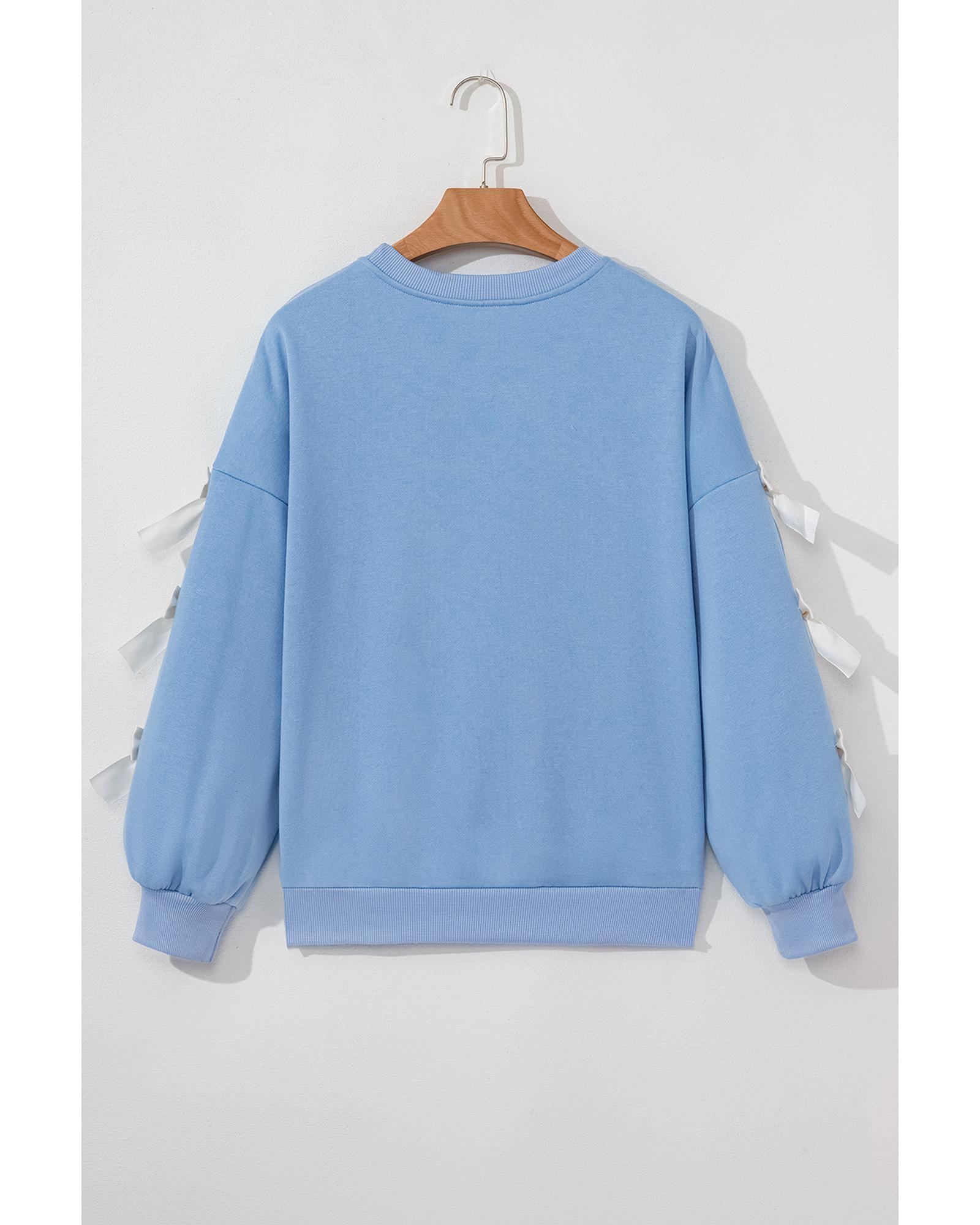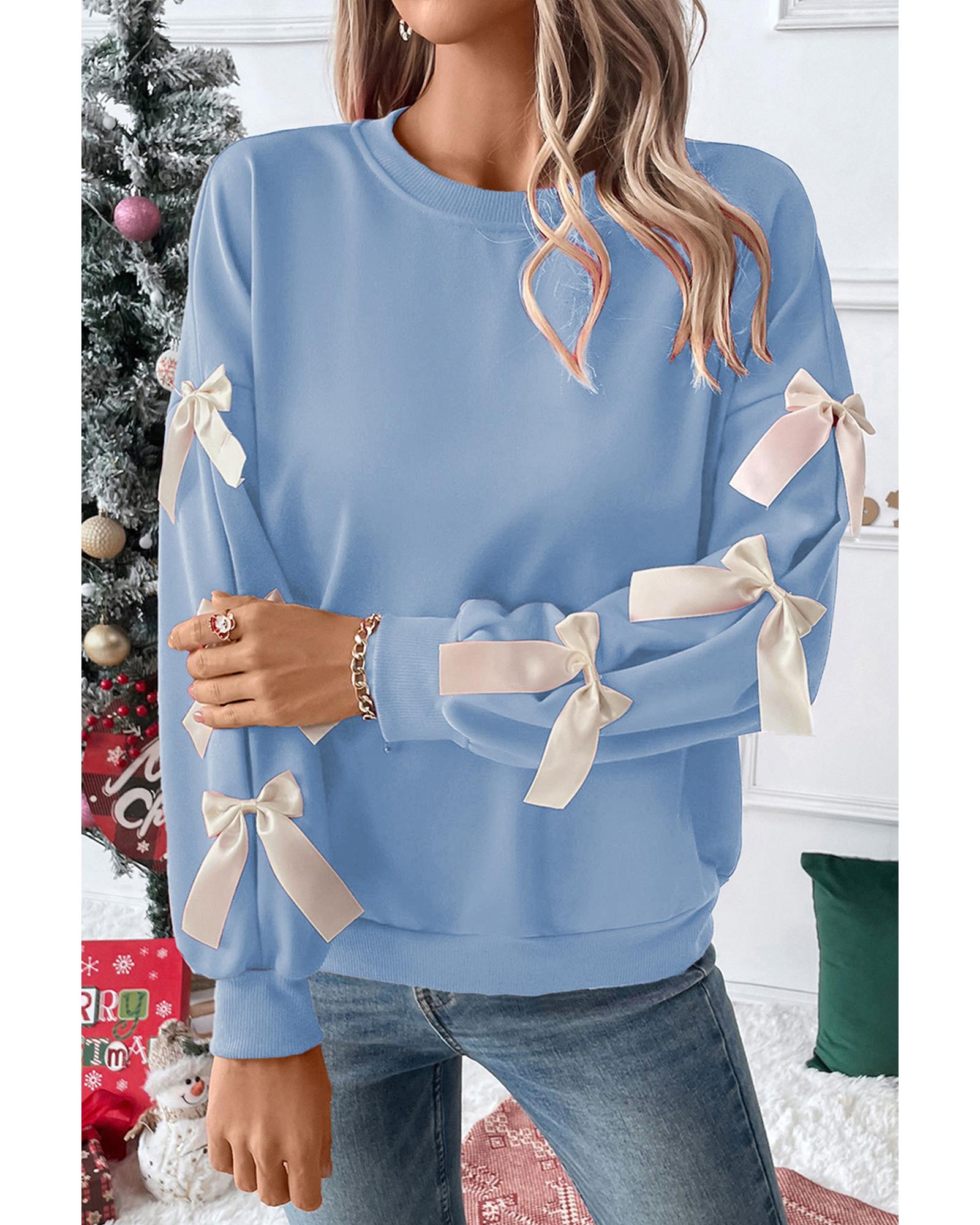 Myosotis Contrast Bow Decor Dropped Sleeve Crewneck Sweatshirt – S
