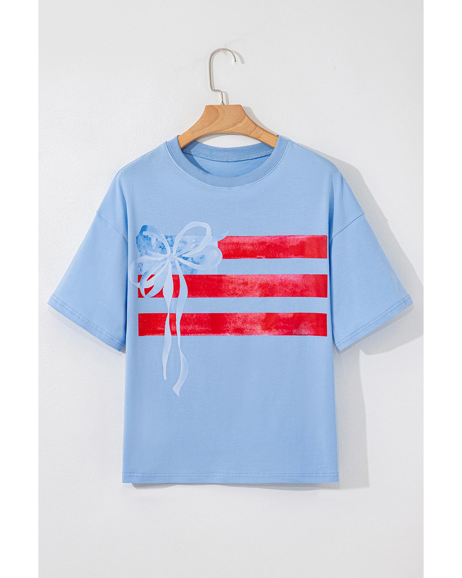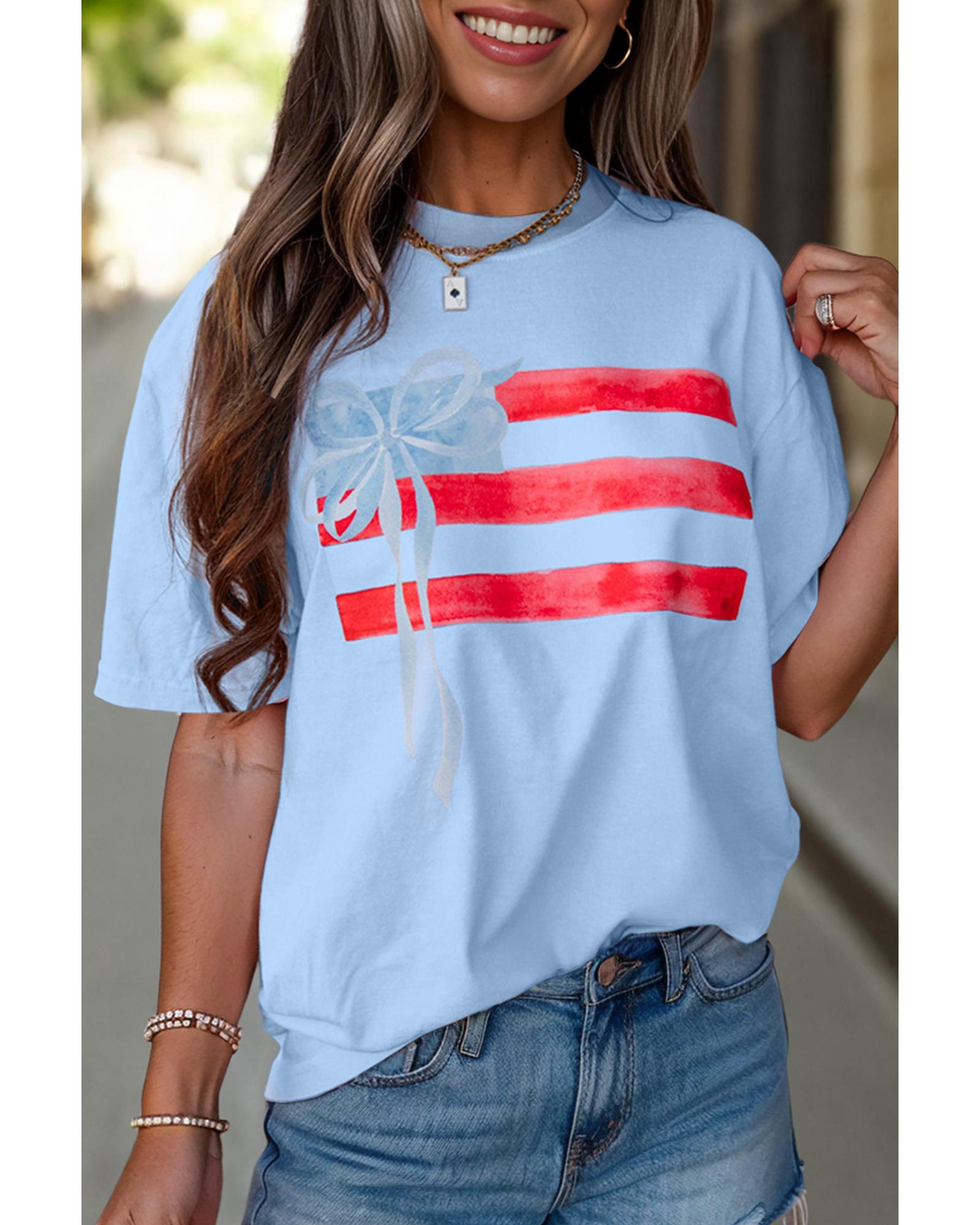 Myosotis Flag Bow Graphic Crewneck Tee – S