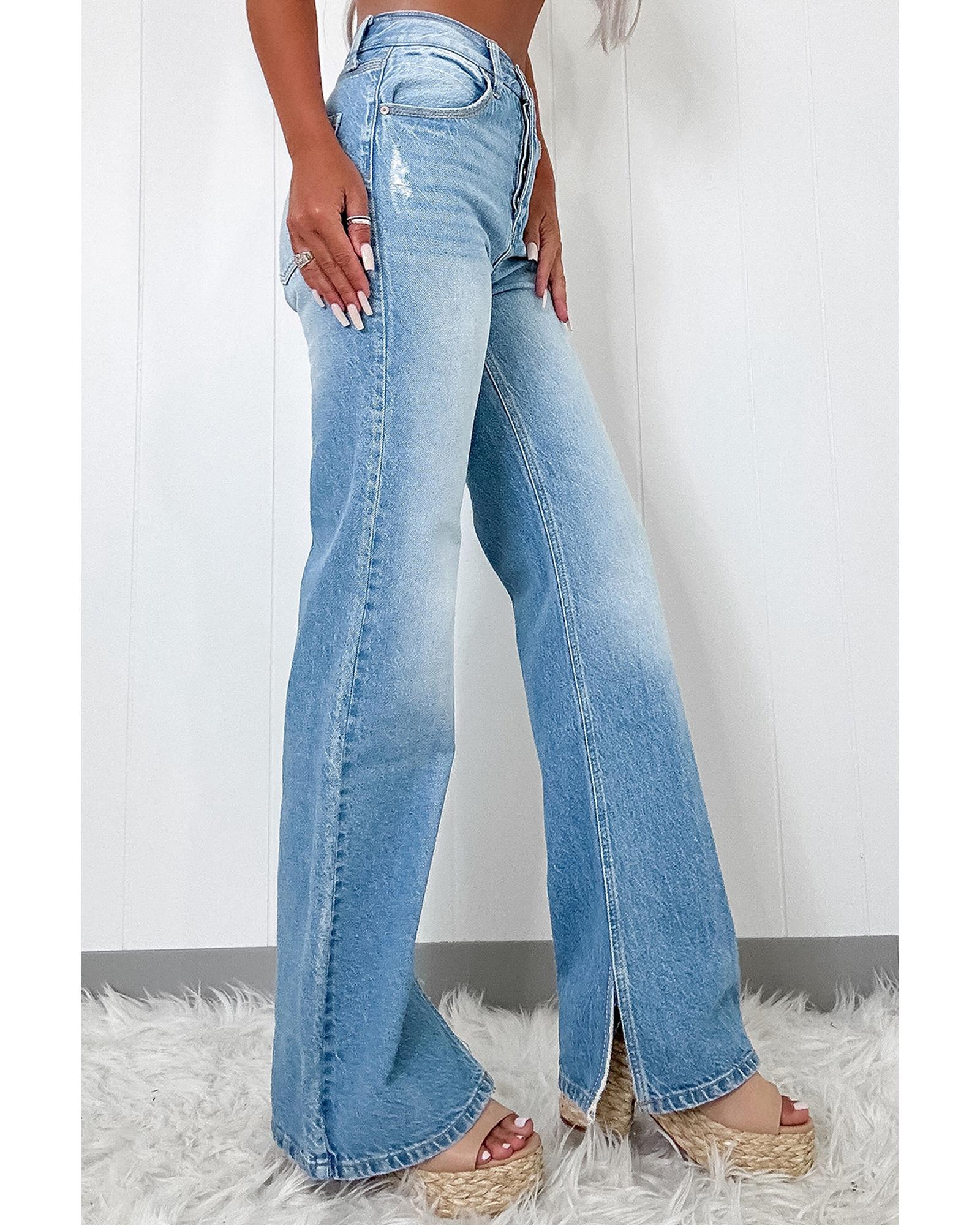 Myosotis High Rise Shift Slit Leg Straight Jeans – 12 US