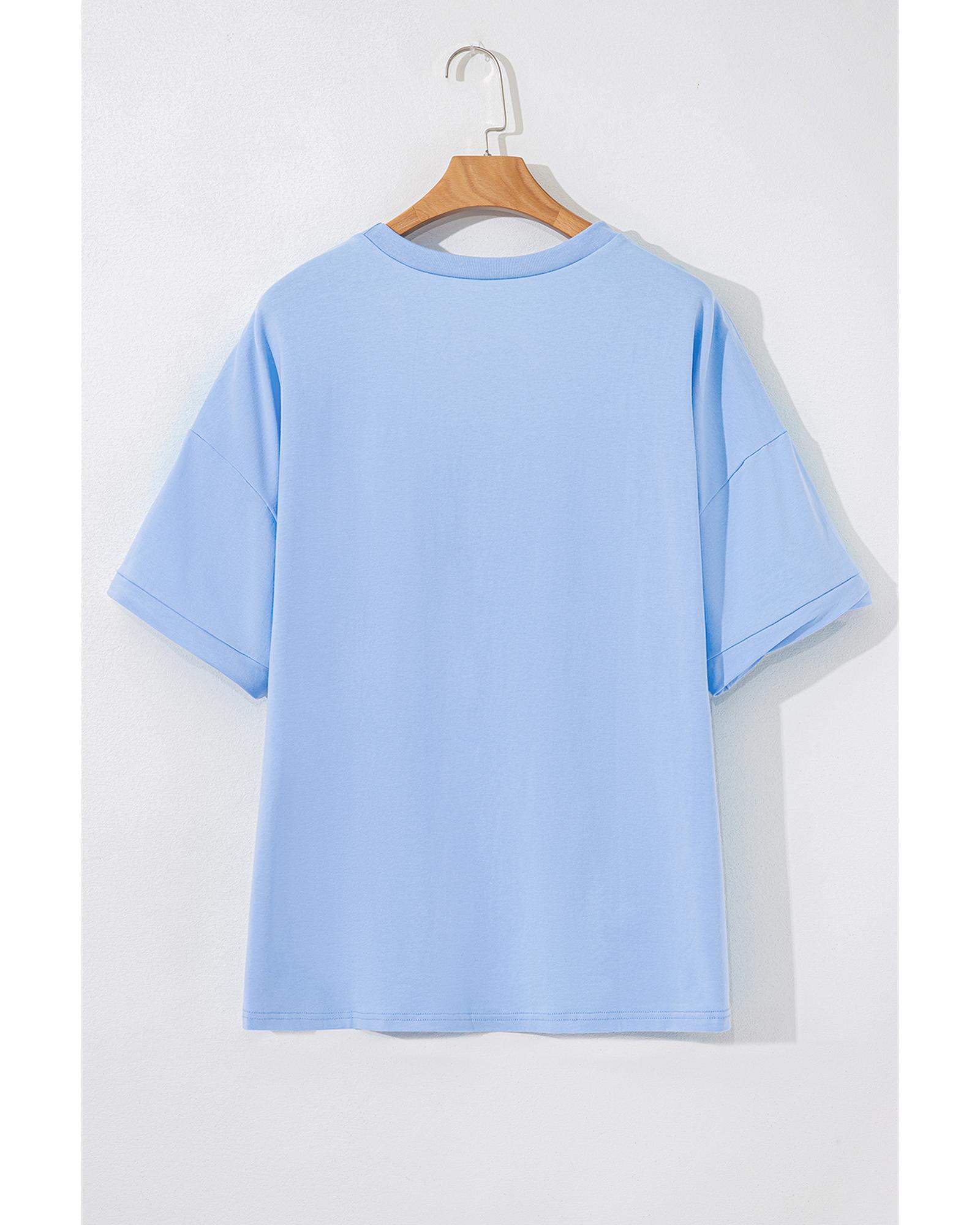 Myosotis TEXAS Bow Graphic Half Sleeve Drop Shoulder Loose Tee – M