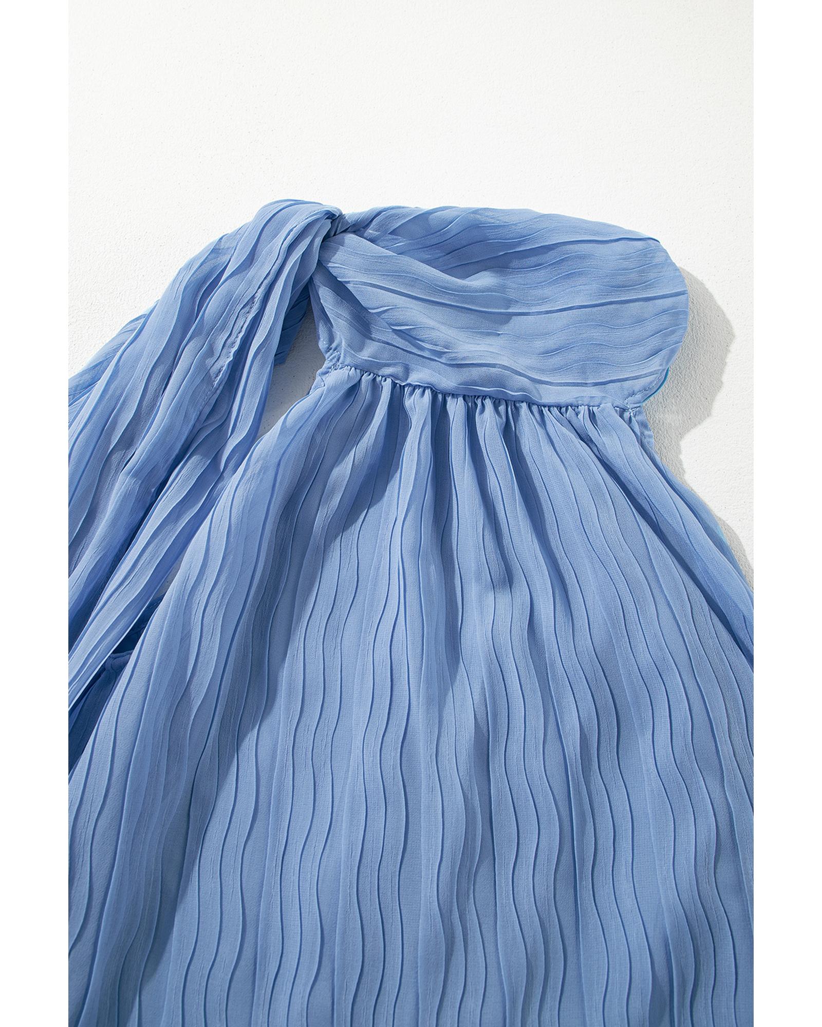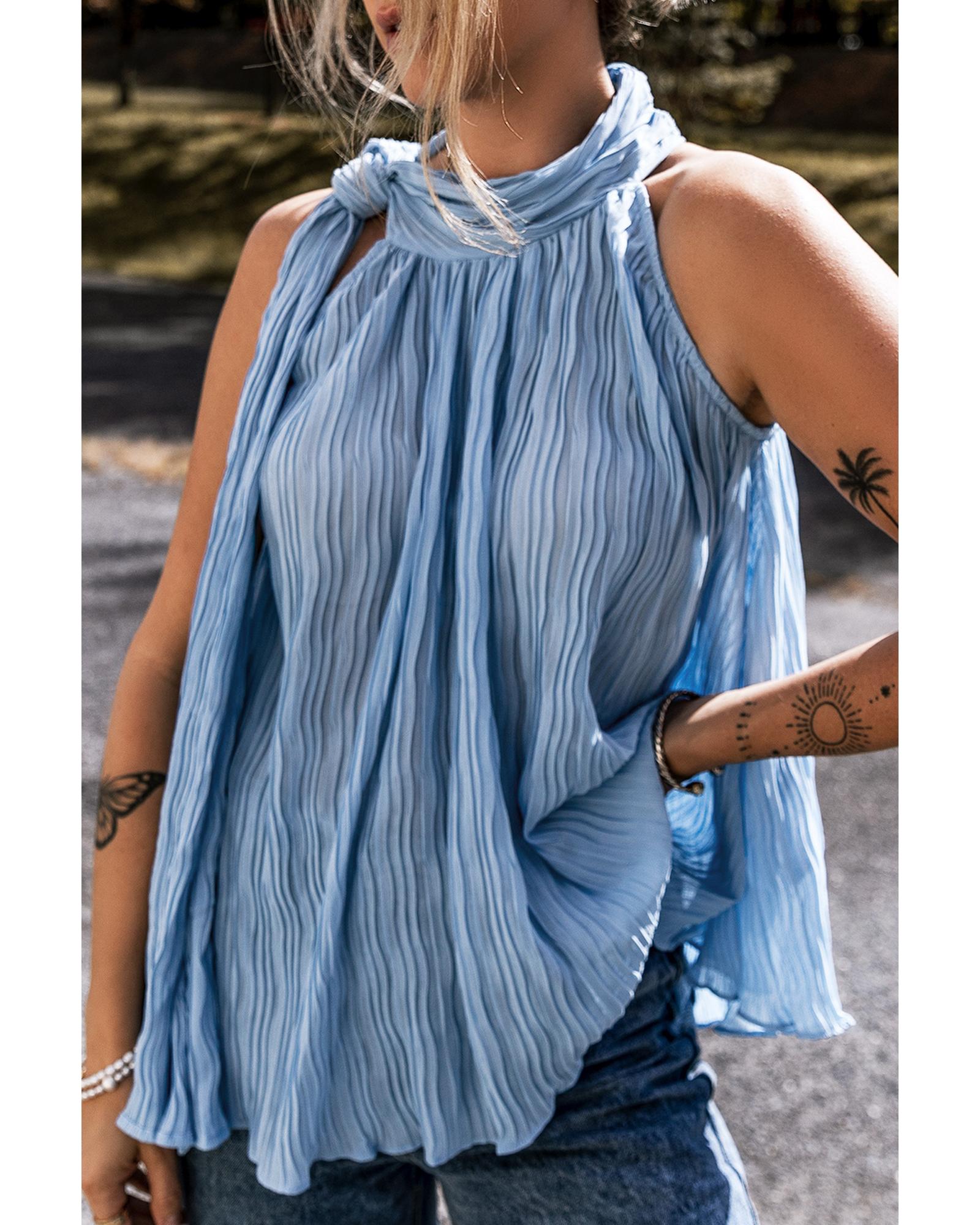 Myosotis Textured Pleated Tied Mock Neck Flowy Tank Top – XL