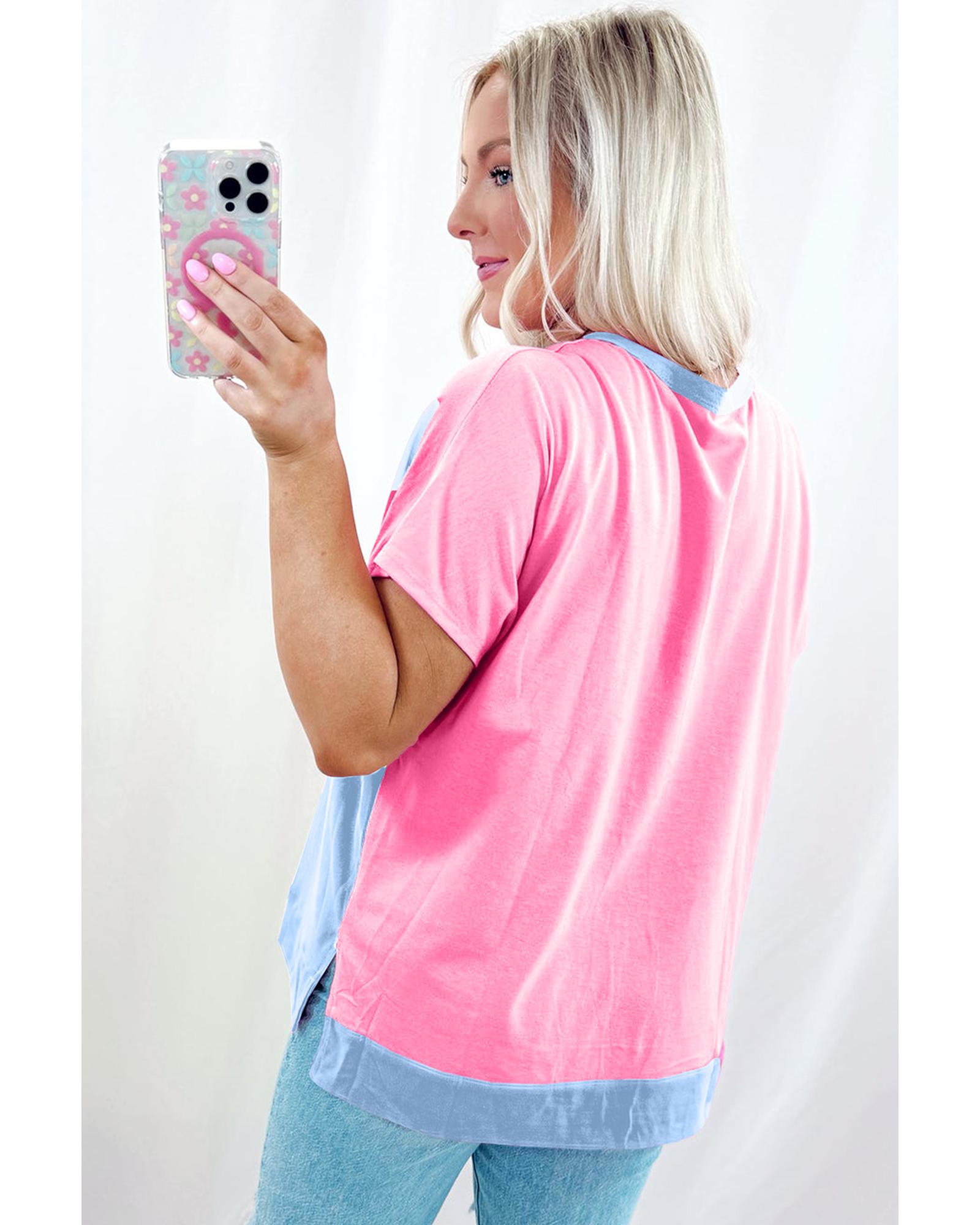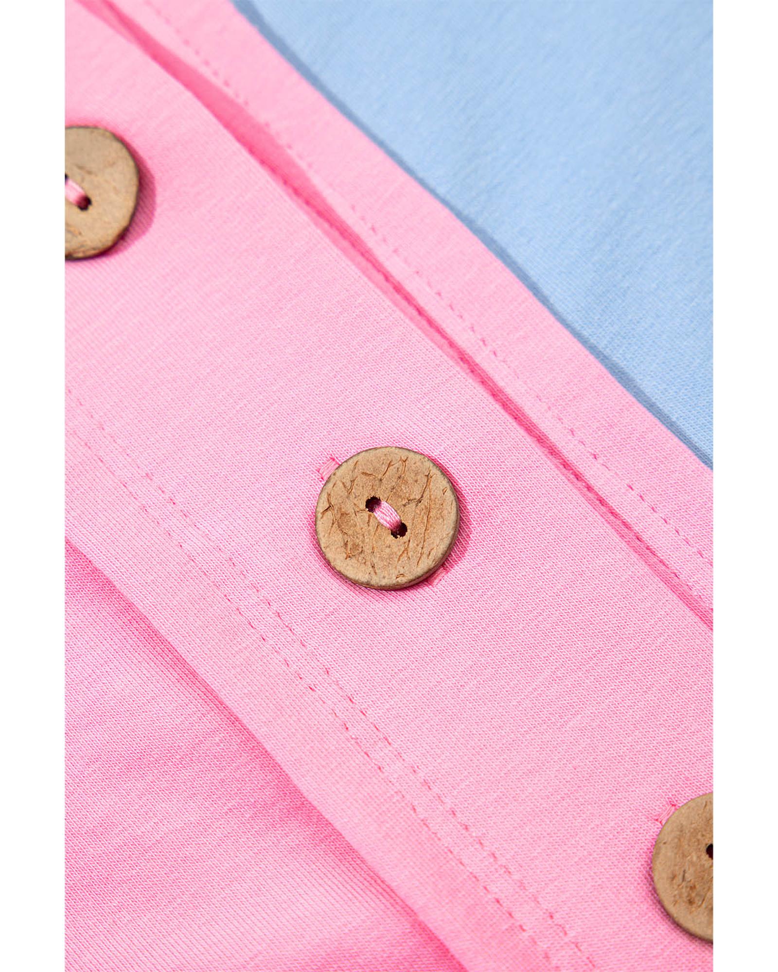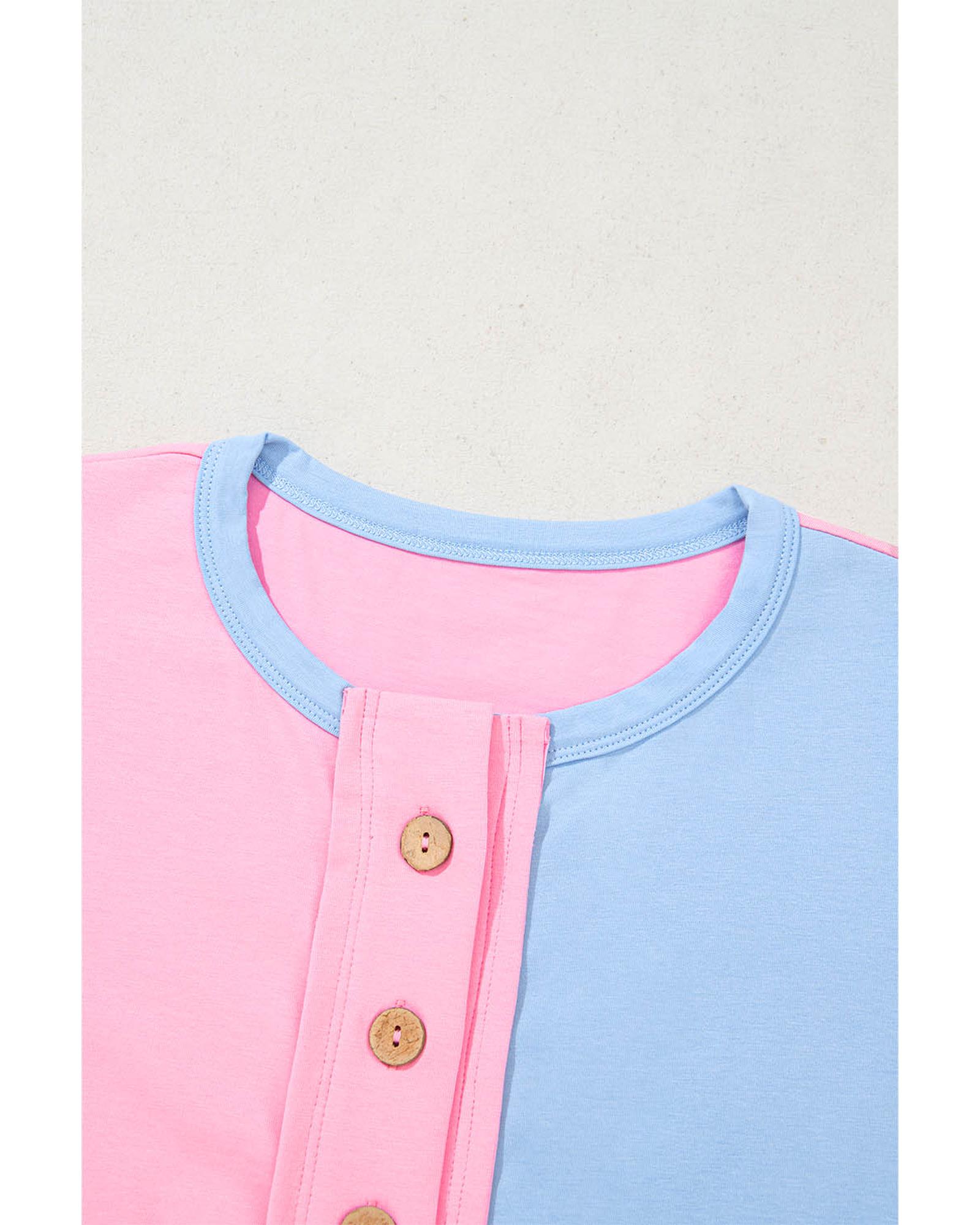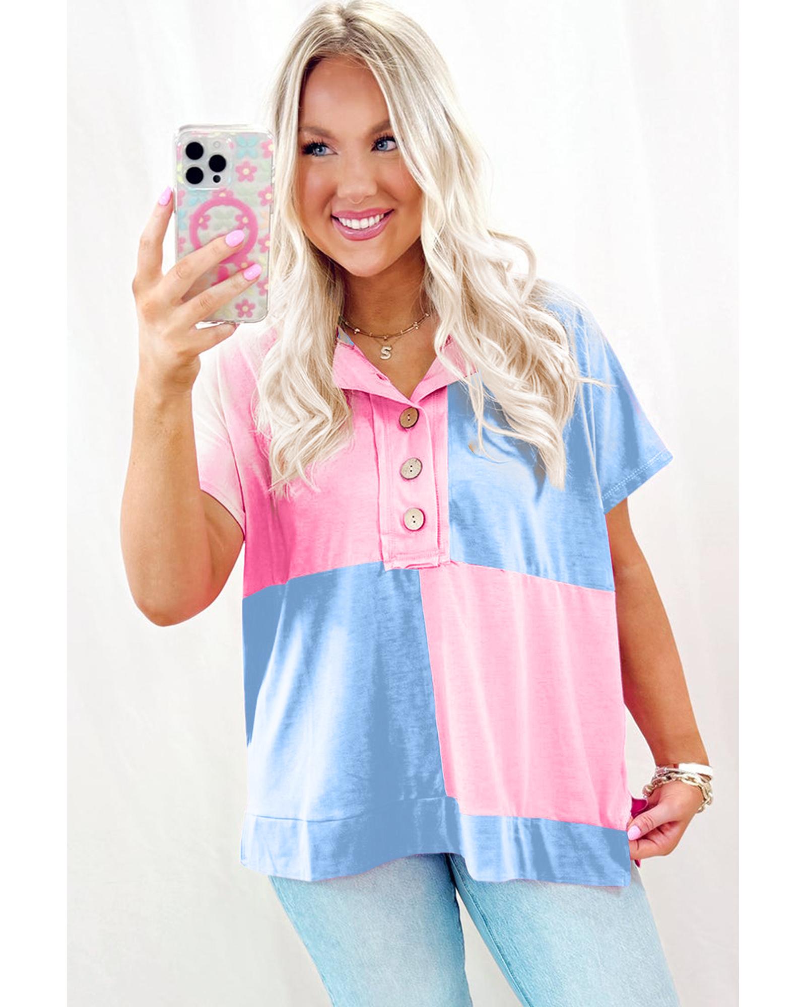 Myosotis Two Tone Half Buttons Collared T Shirt – L