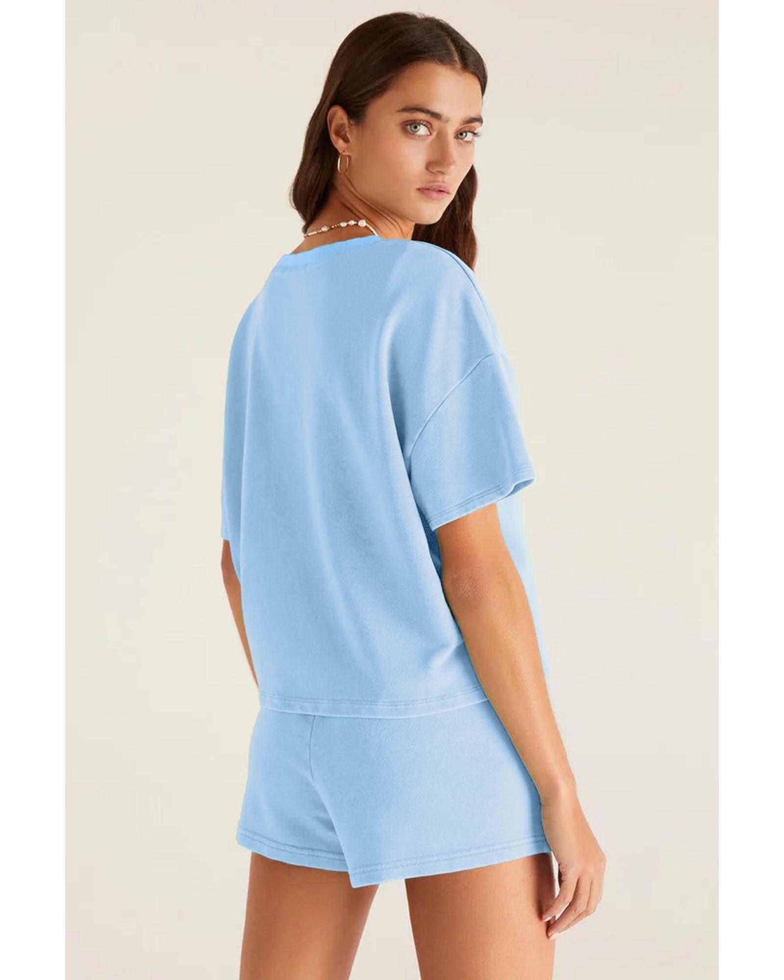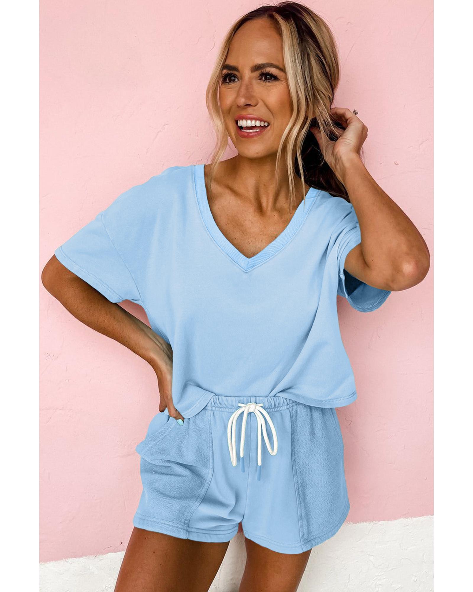 Myosotis V Neck Drop Shoulder Tee and Patchwork Drawstring Shorts Set – M