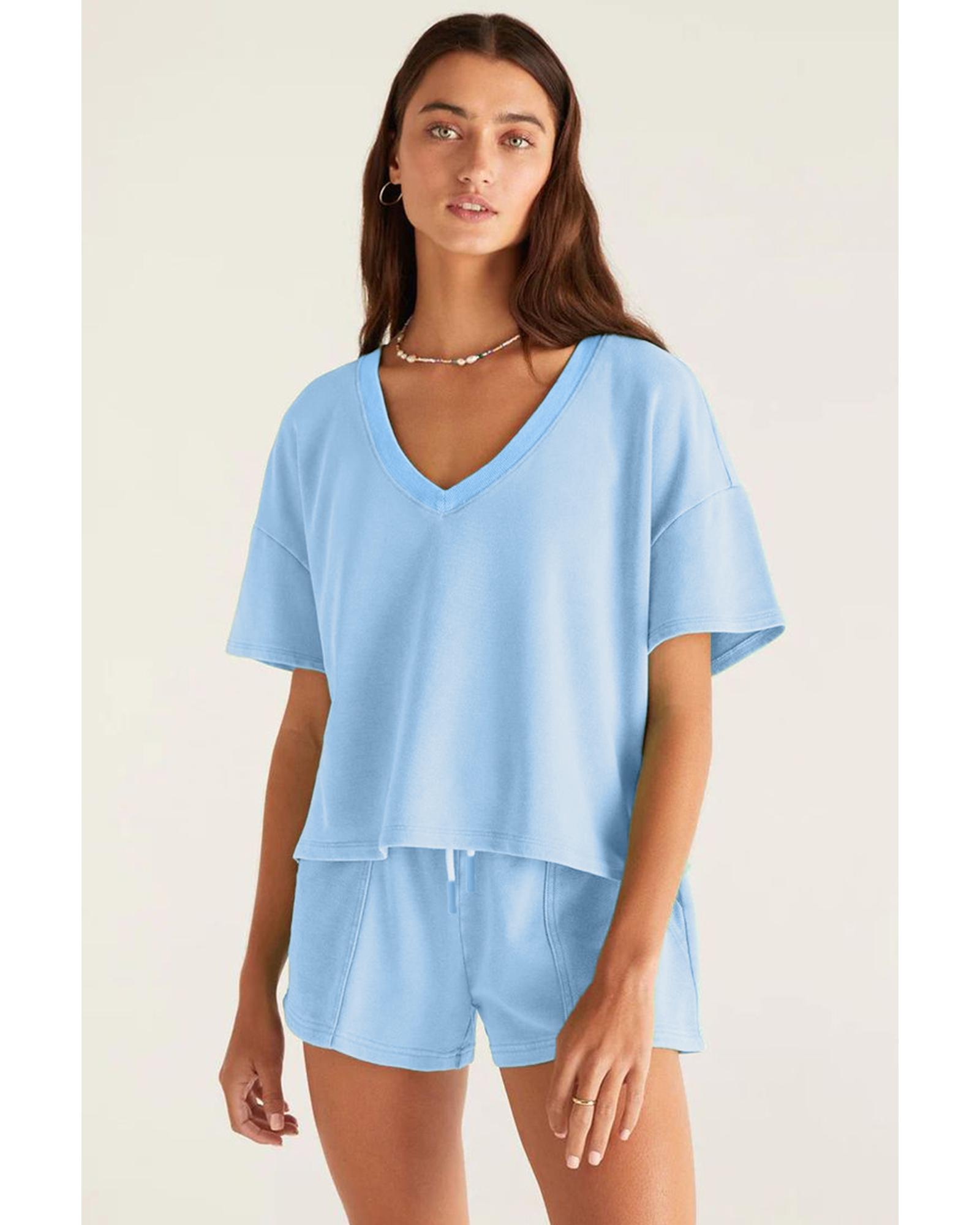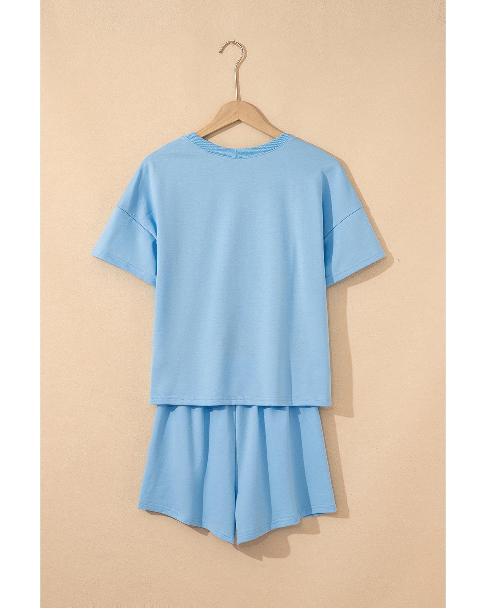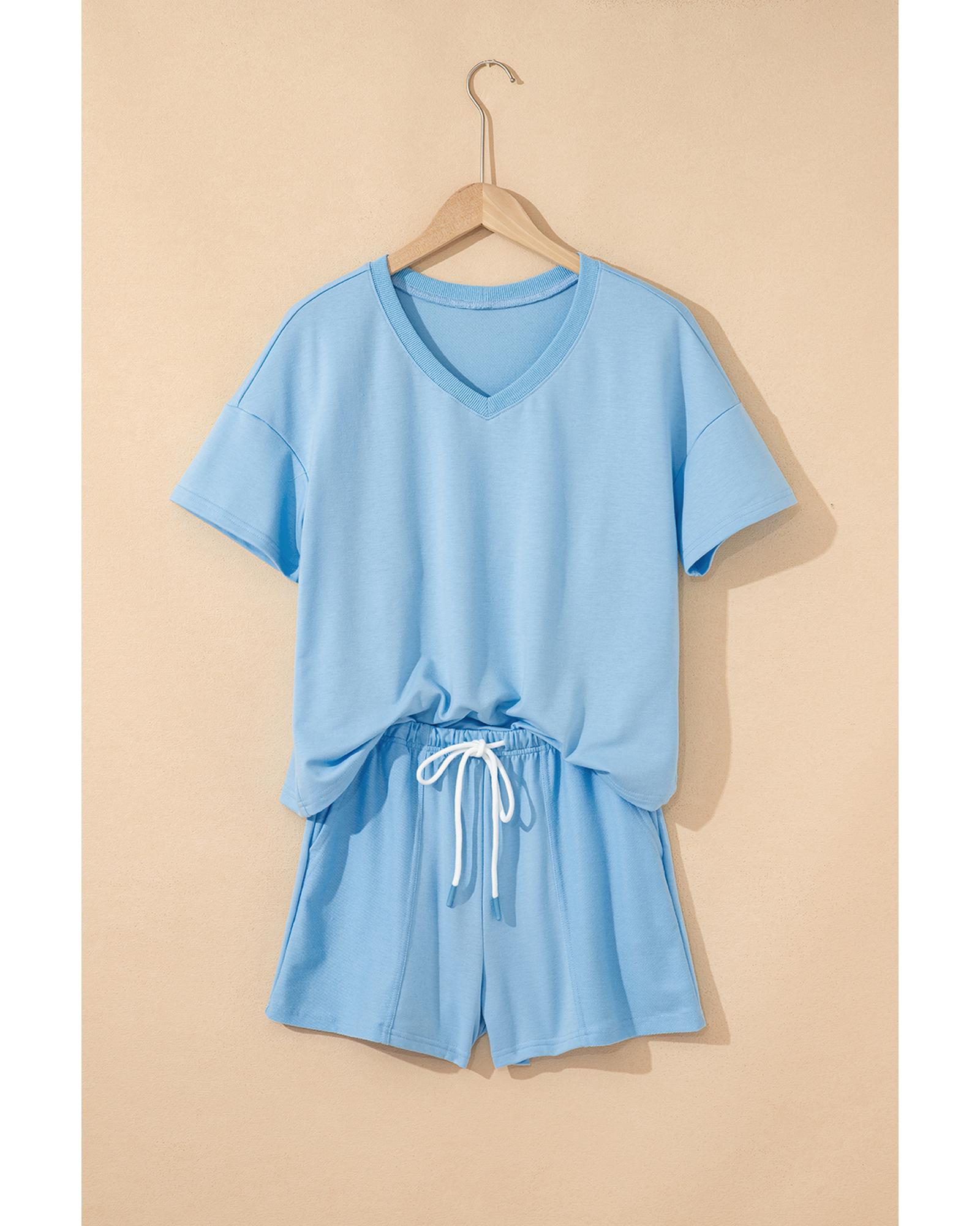 Myosotis V Neck Drop Shoulder Tee and Patchwork Drawstring Shorts Set – XL