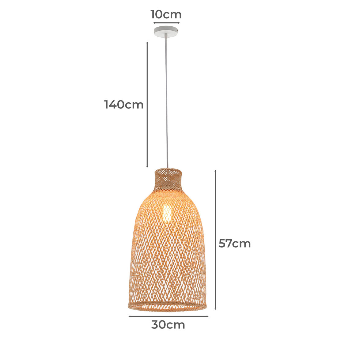 Natural Woven Bamboo Cone Pendant Lamp Hanging Light Bell Shade Boho Tropical