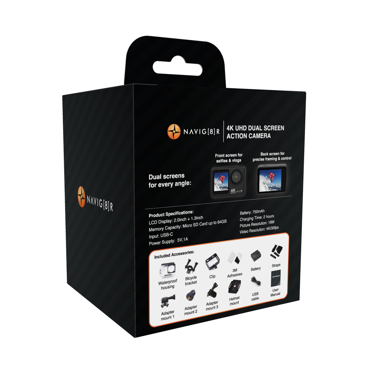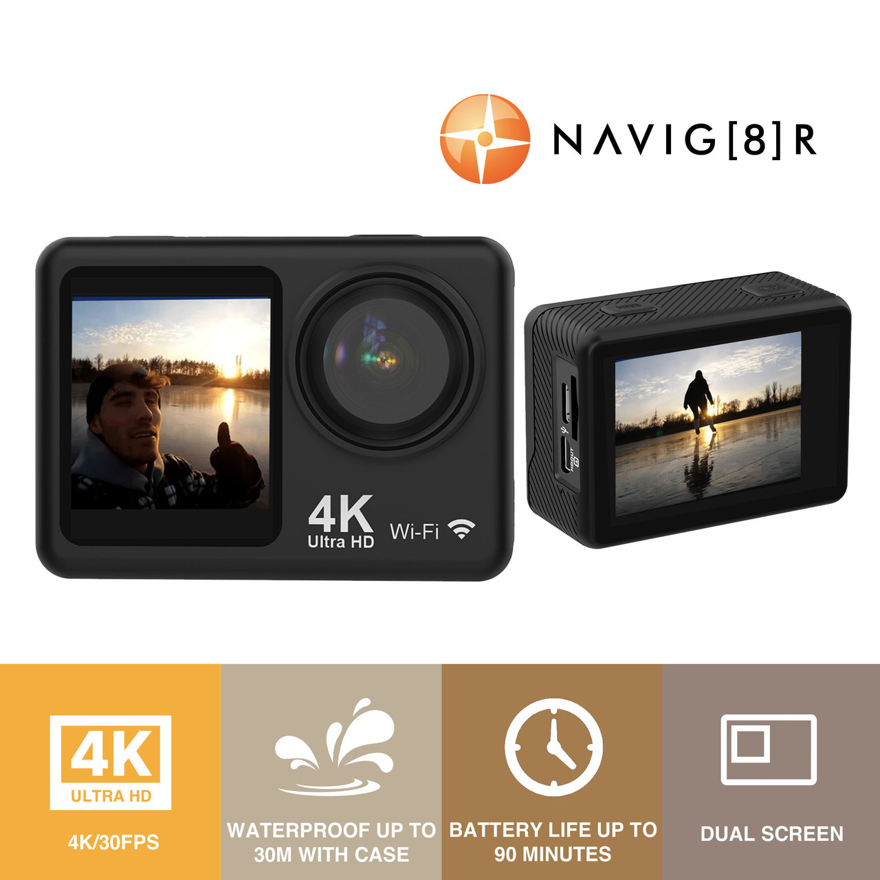 Adventure. Captured. Designed for those who push the limits, the Navig8r 4K UHD Dual Screen Action Camera is built to go wherever the adventure takes you. From deep dives to rugged mountain trails, it delivers stunning 4K Ultra HD video, a dual-screen design, and rugged waterproof durabilityso you never miss a moment. Whether youre an explorer, vlogger, or thrill-seeker, this is the camera that keeps up.