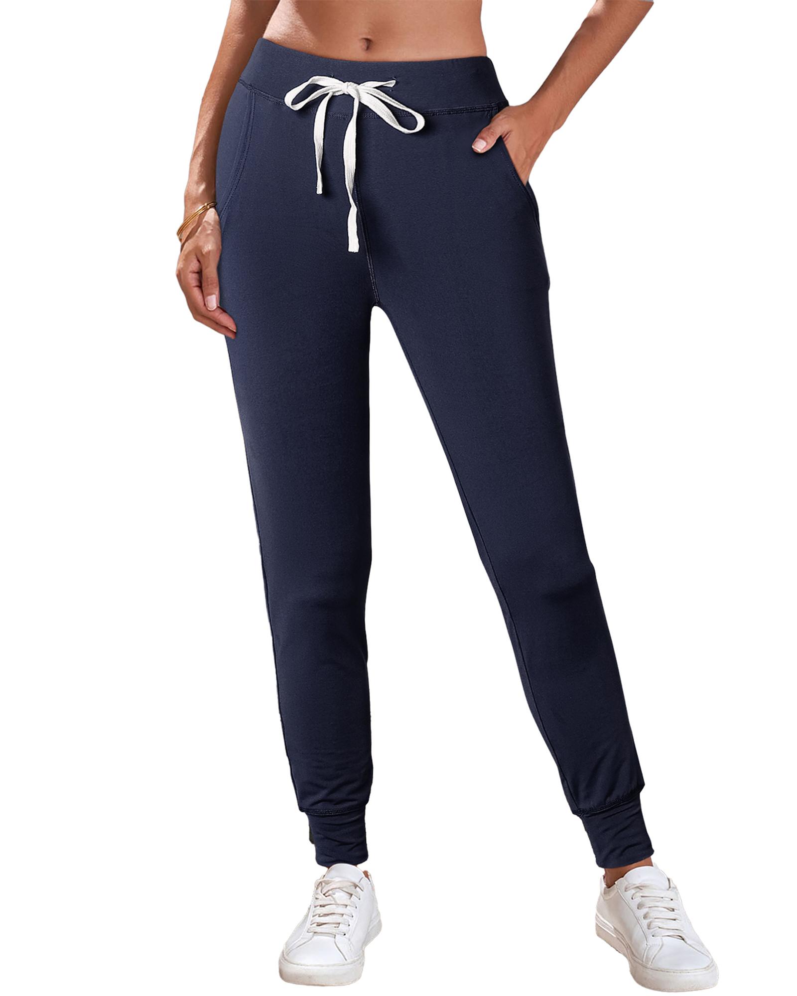Navy Blue Drawstring Waist Pocketed Joggers – XL