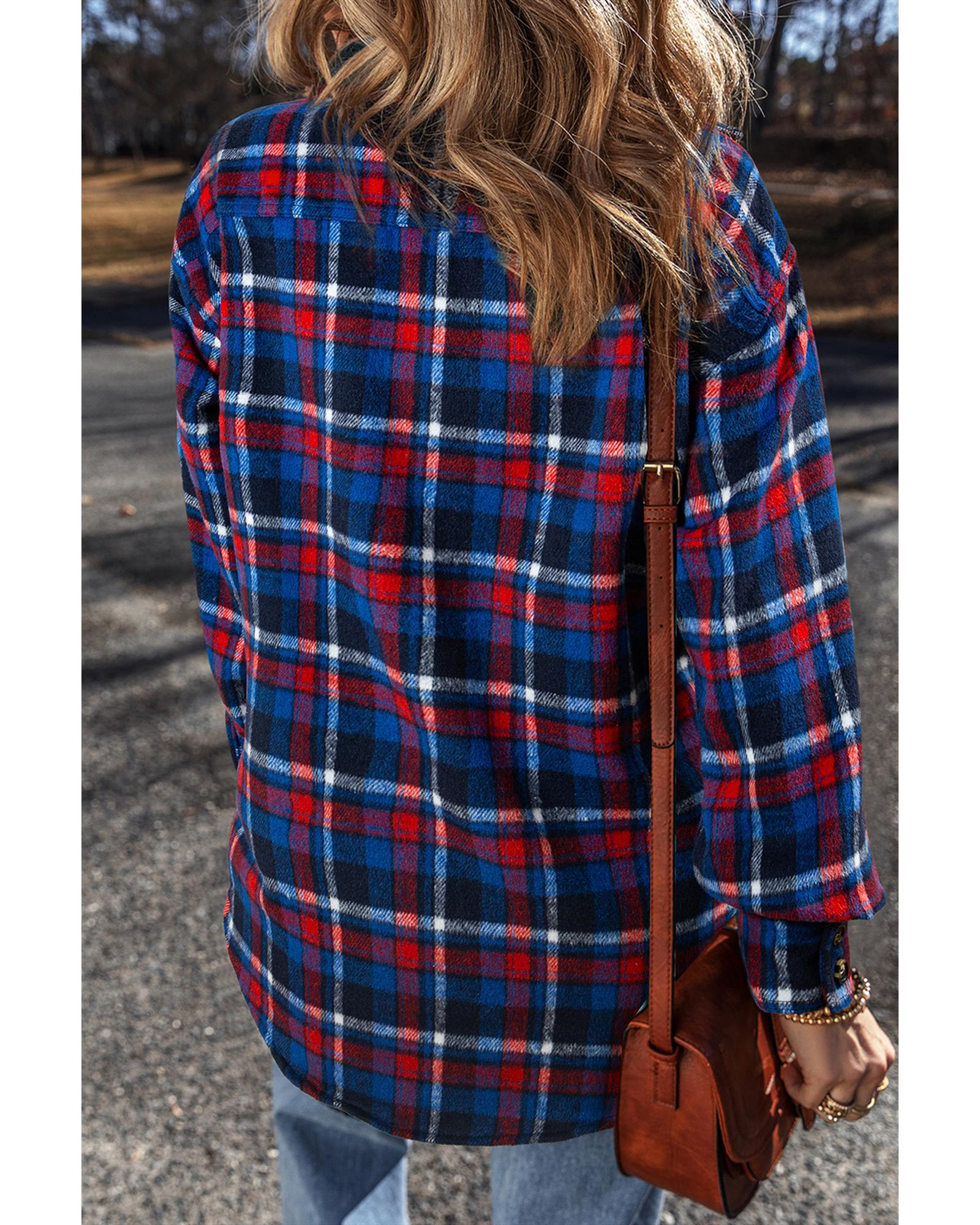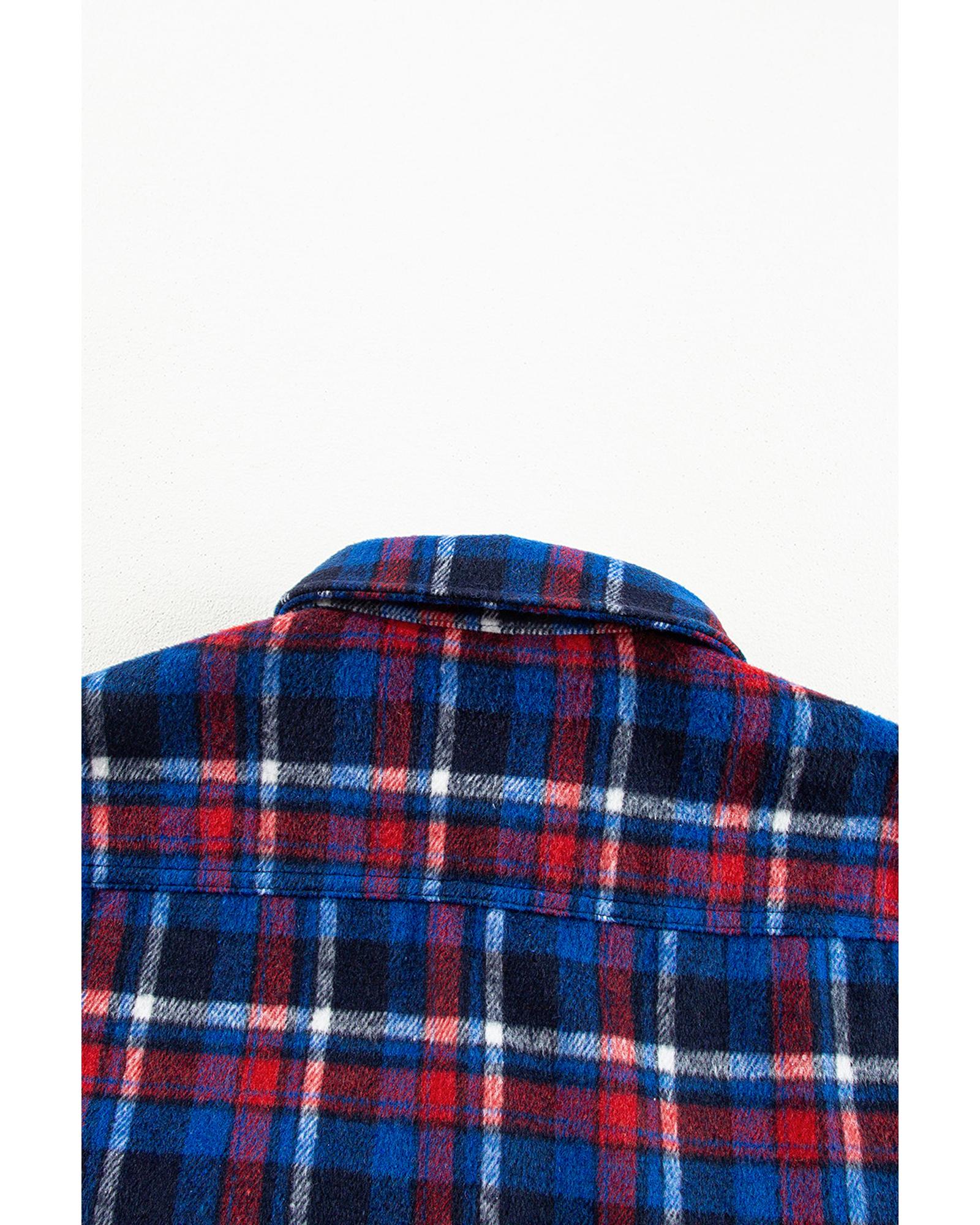 Navy Blue Plaid Flap Pocket Button Up Shacket – XL