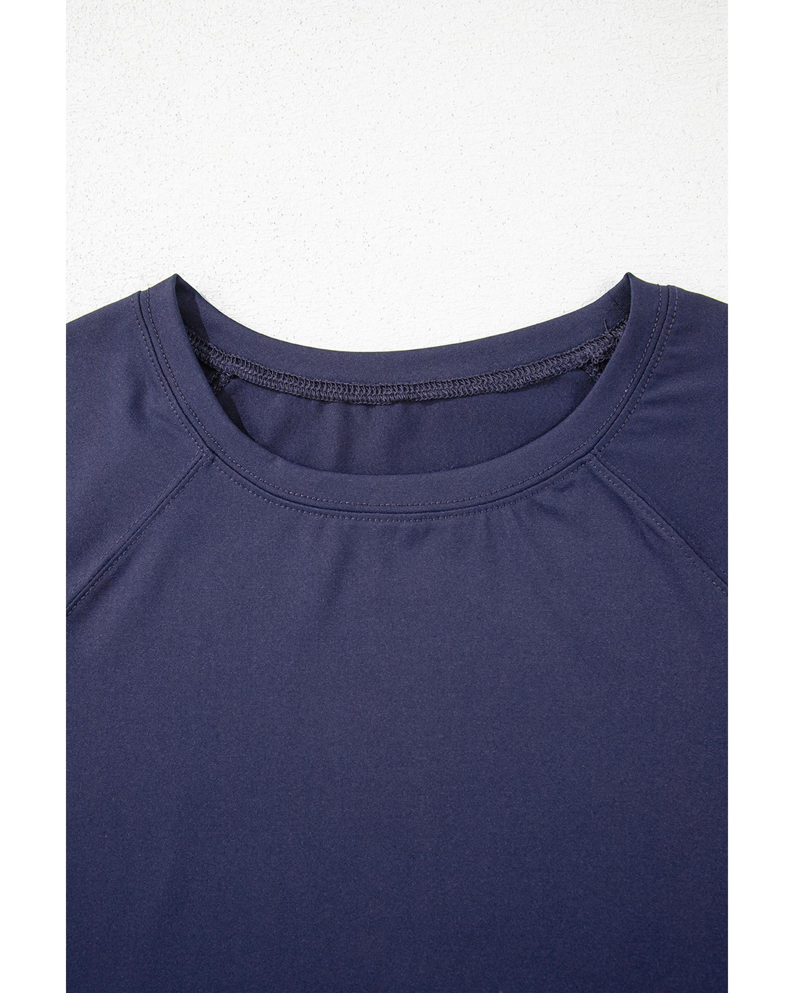 - Navy Blue Raw Hem Loose Tee and Wide Leg Pants Set