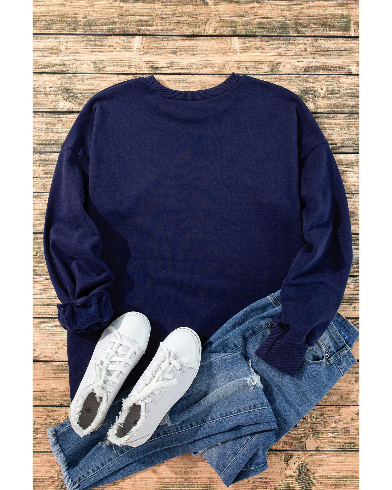 Navy Blue Solid Fleece Lined Drop Shoulder High Low Sweatshirt – M
