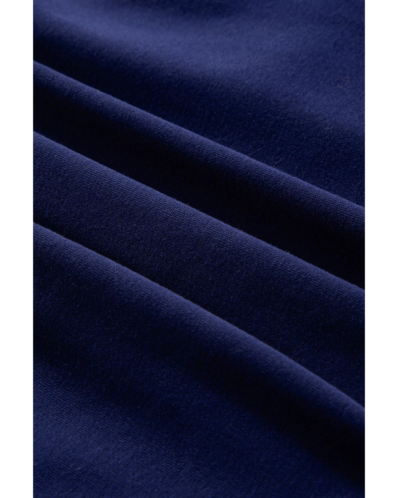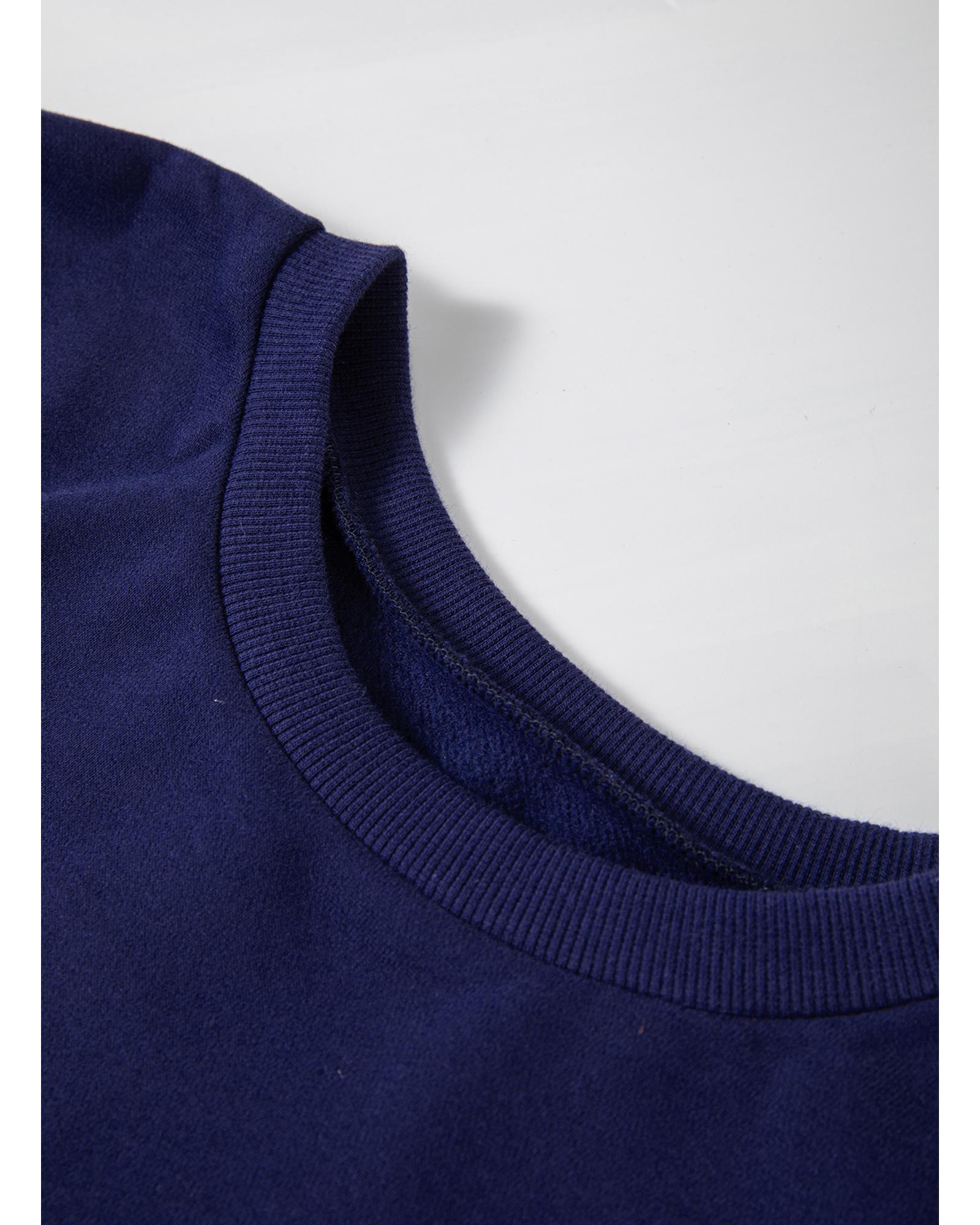 Navy Blue Solid Fleece Lined Drop Shoulder High Low Sweatshirt – S