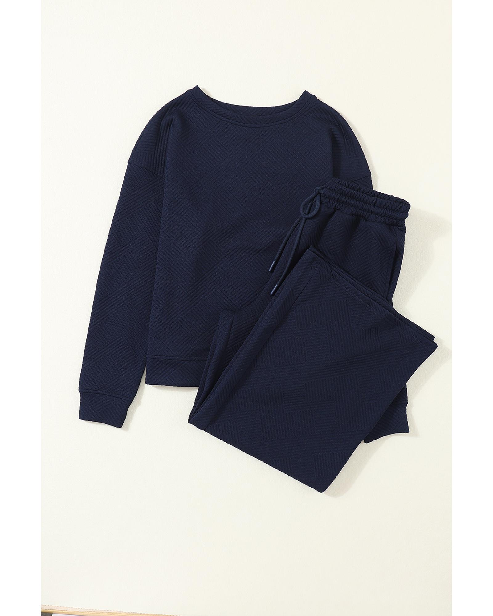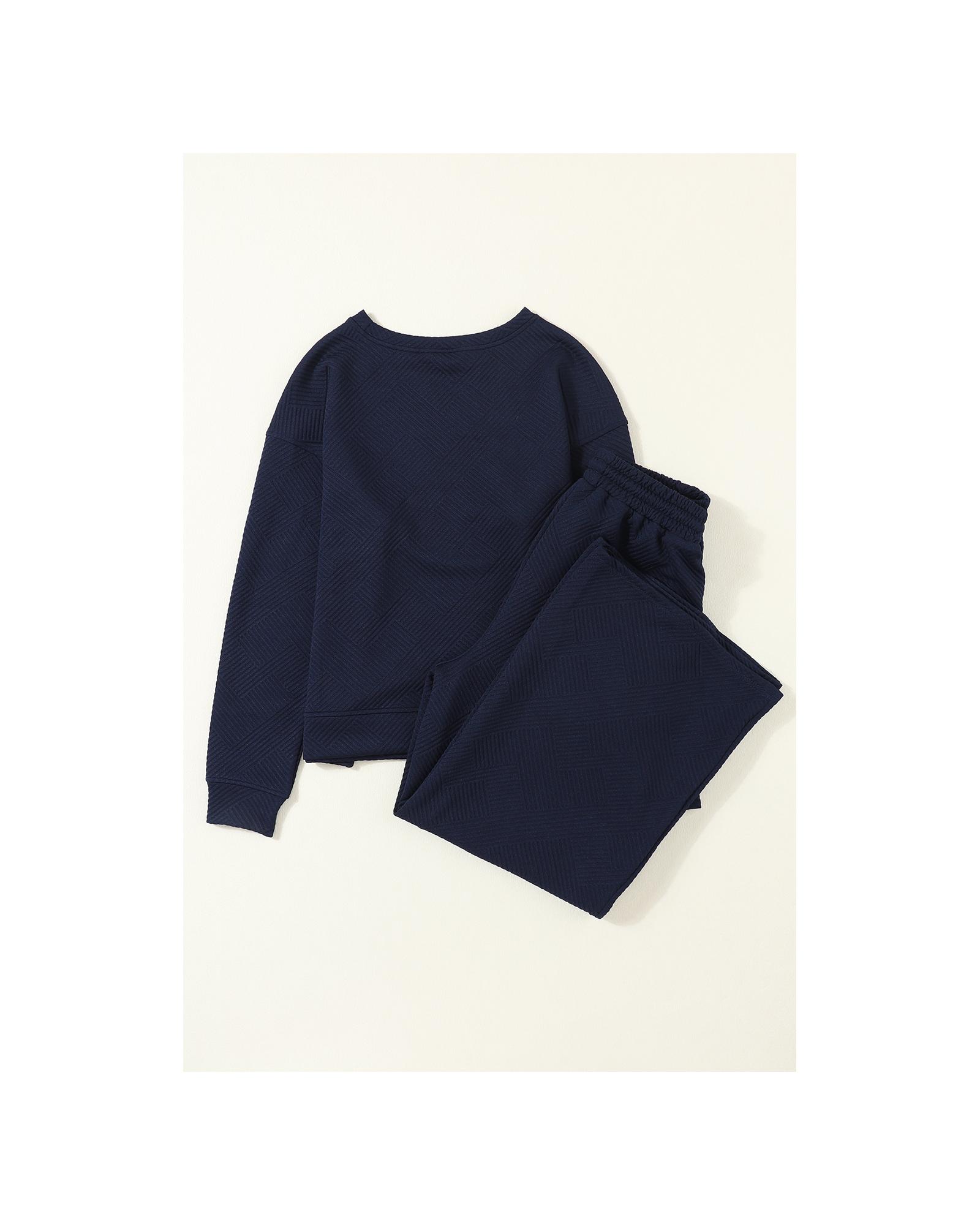 Navy Blue Ultra Loose Textured 2pcs Slouchy Outfit – M