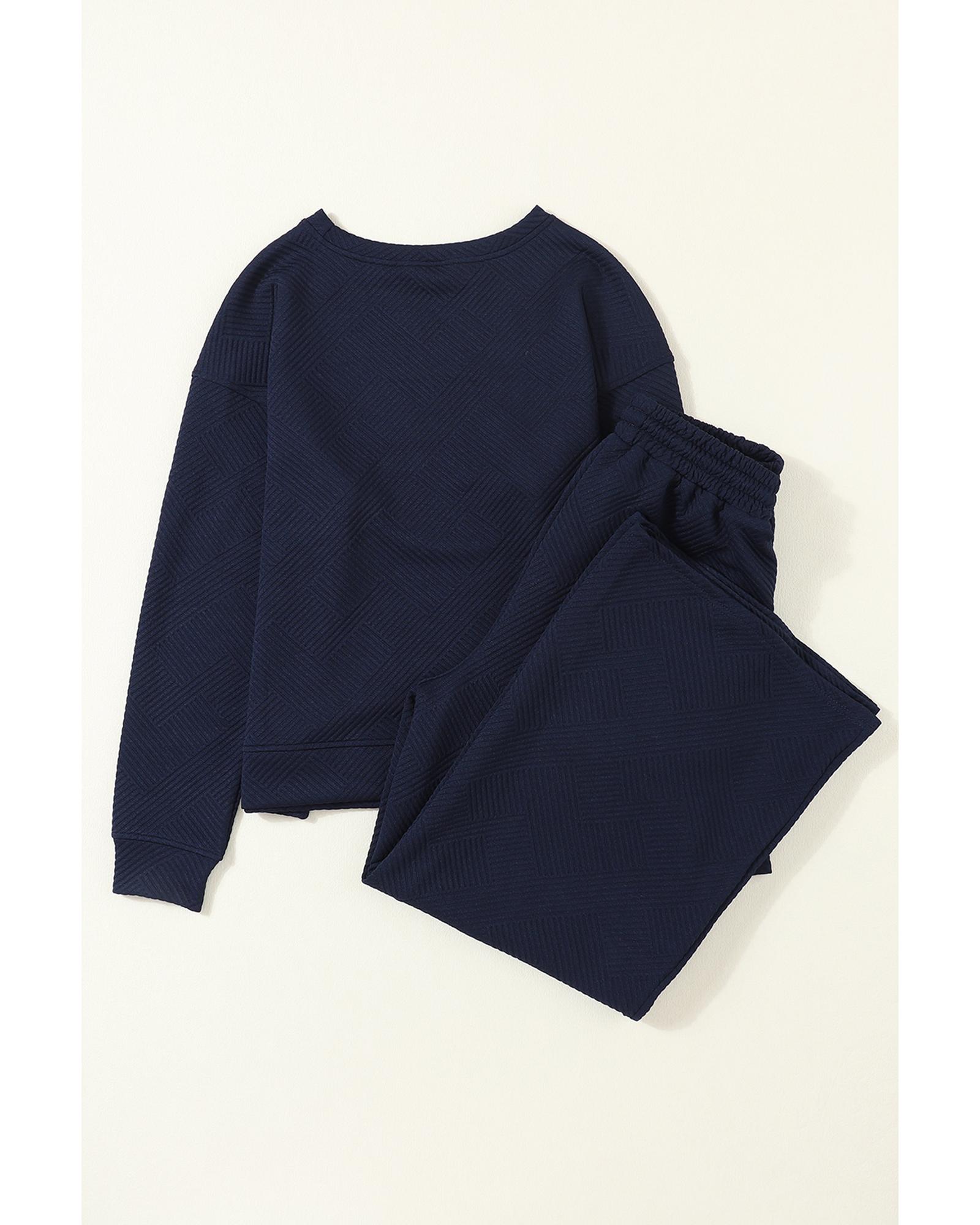 Navy Blue Ultra Loose Textured 2pcs Slouchy Outfit – S
