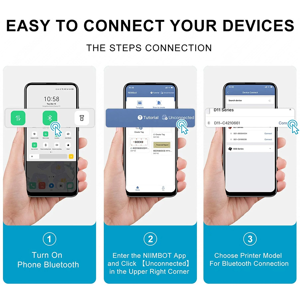 Niimbot D11 Portable Label Printer provides a New Mobile Printing Method for Modern Life. This lightweight, handheld label maker uses wireless technology to design and print pre-designed or custom labels up to 15mm wide from your mobile device.