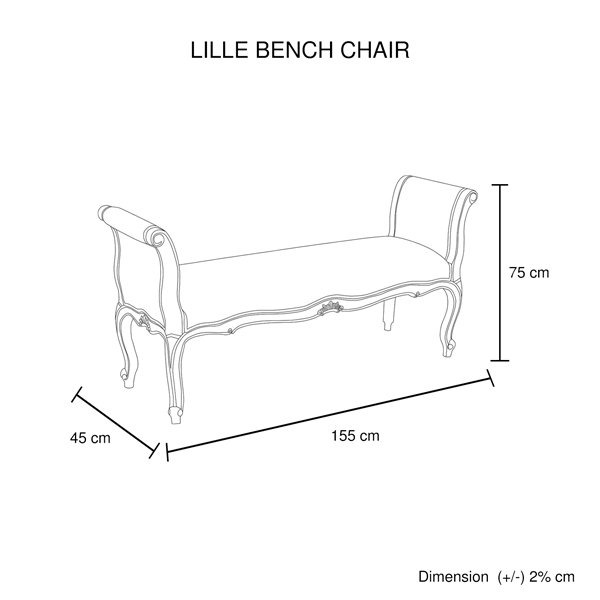 Lille Bench chair exudes vintage look with its design and colour. White washed finish on the chair presents a timeless look that will stand out in any bedroom. Its rolled armrest looks so inviting and presents a cozy vibe.
