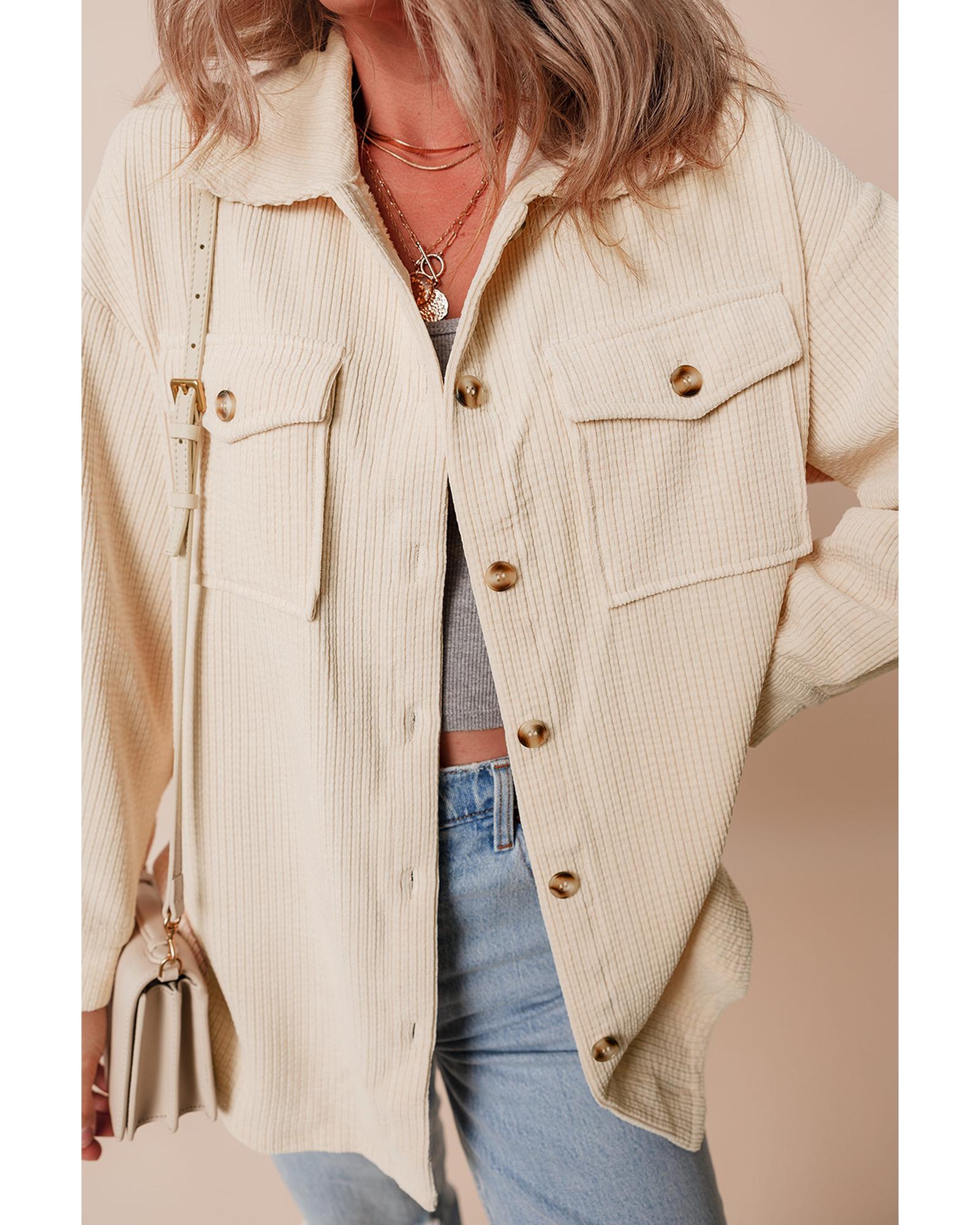 Oatmeal Corduroy Flap Pocket Button Up Shacket – L