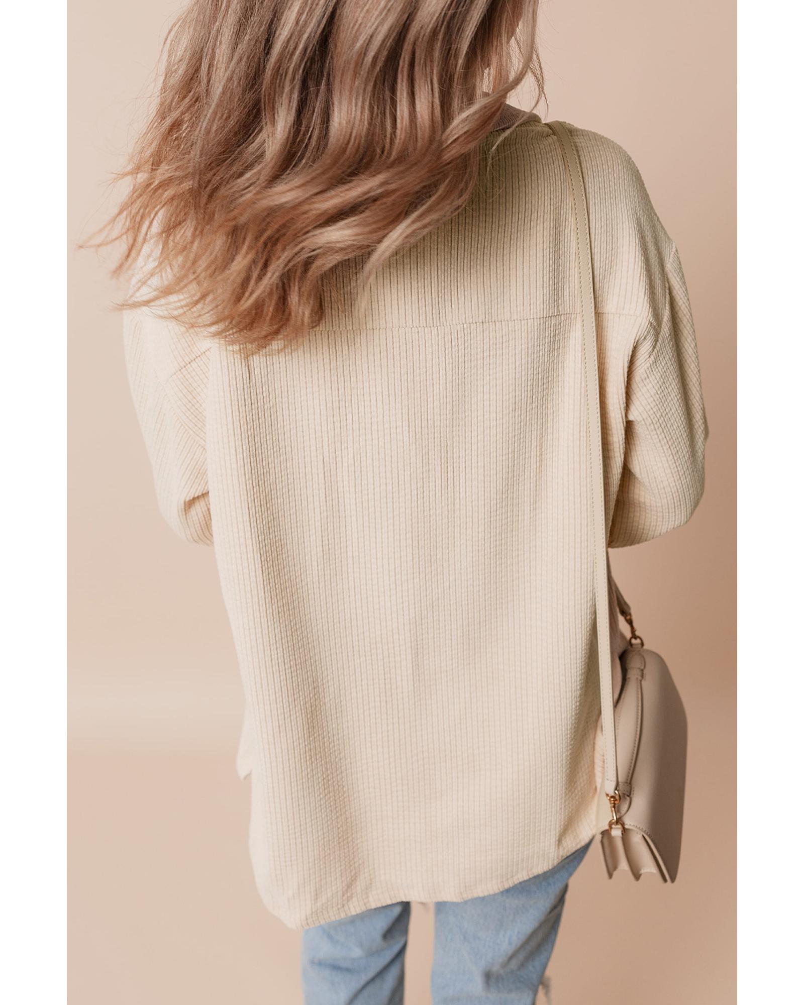 Oatmeal Corduroy Flap Pocket Button Up Shacket – M
