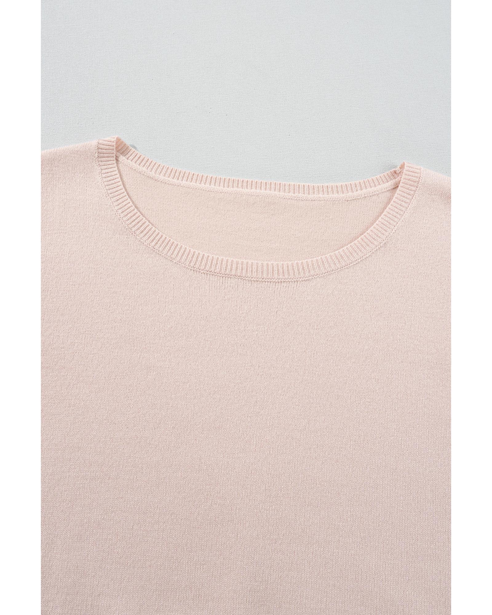 Bright Pink Lattice Textured Knit Short Sleeve Sweater - XL