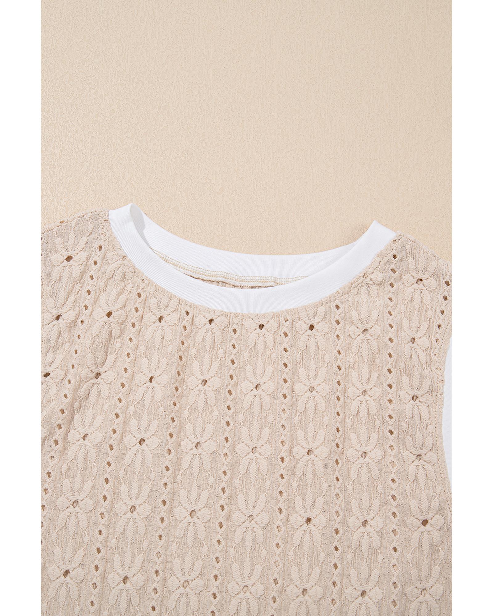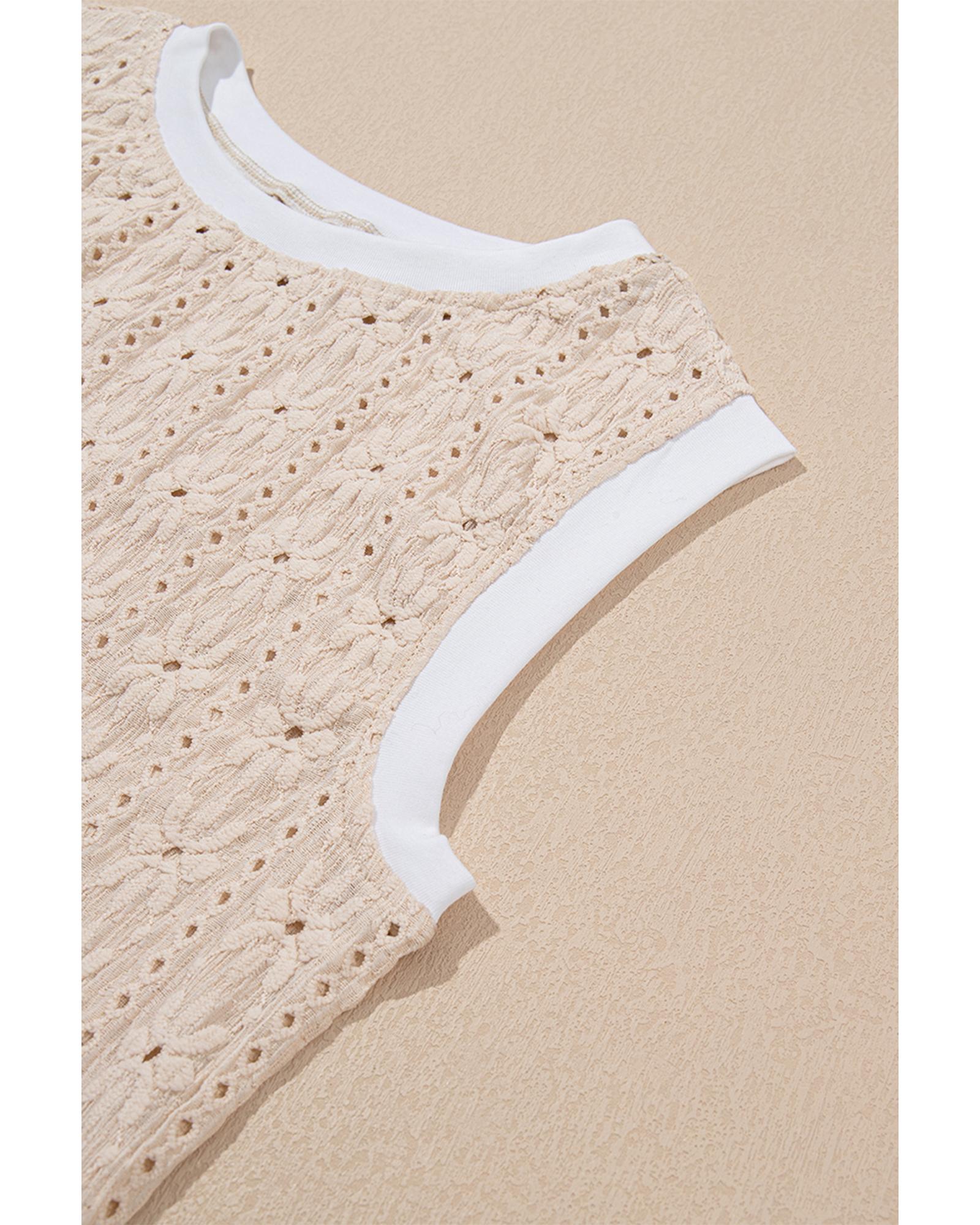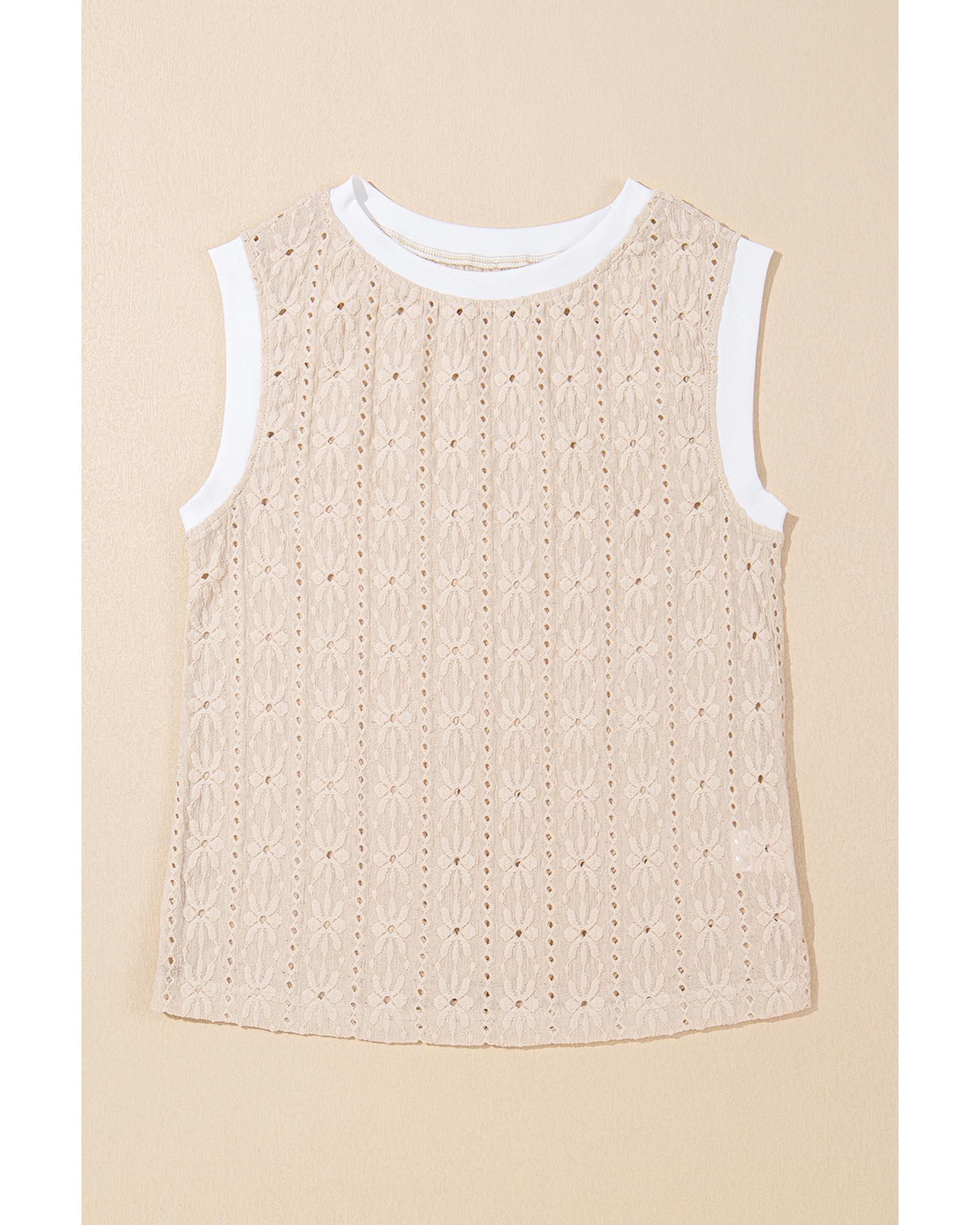 Oatmeal Floral Textured Crew Neck Tank Top – L