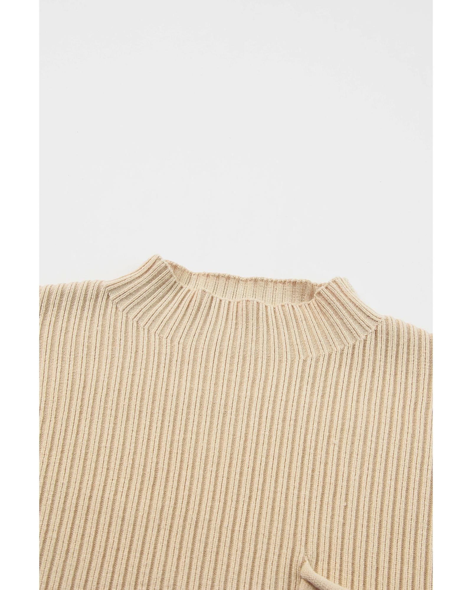 - Oatmeal patch pocket ribbed knit short sleeve sweater