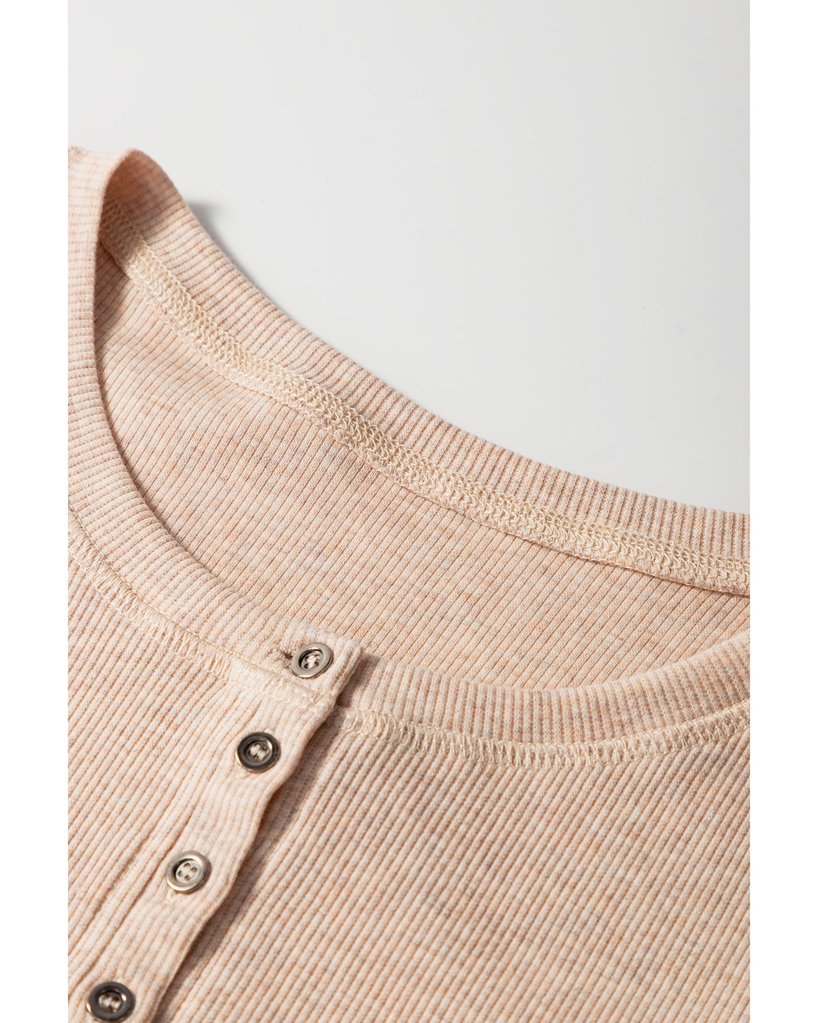 Oatmeal Short Sleeve Half Button Ribbed Knit Top – L
