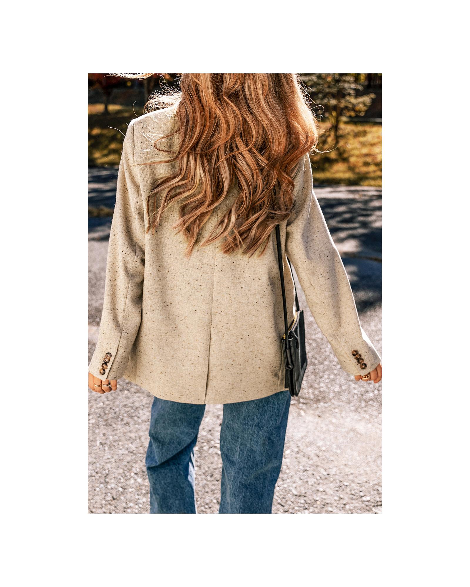 Oatmeal Single Breasted Elegant Suit Jacket – M