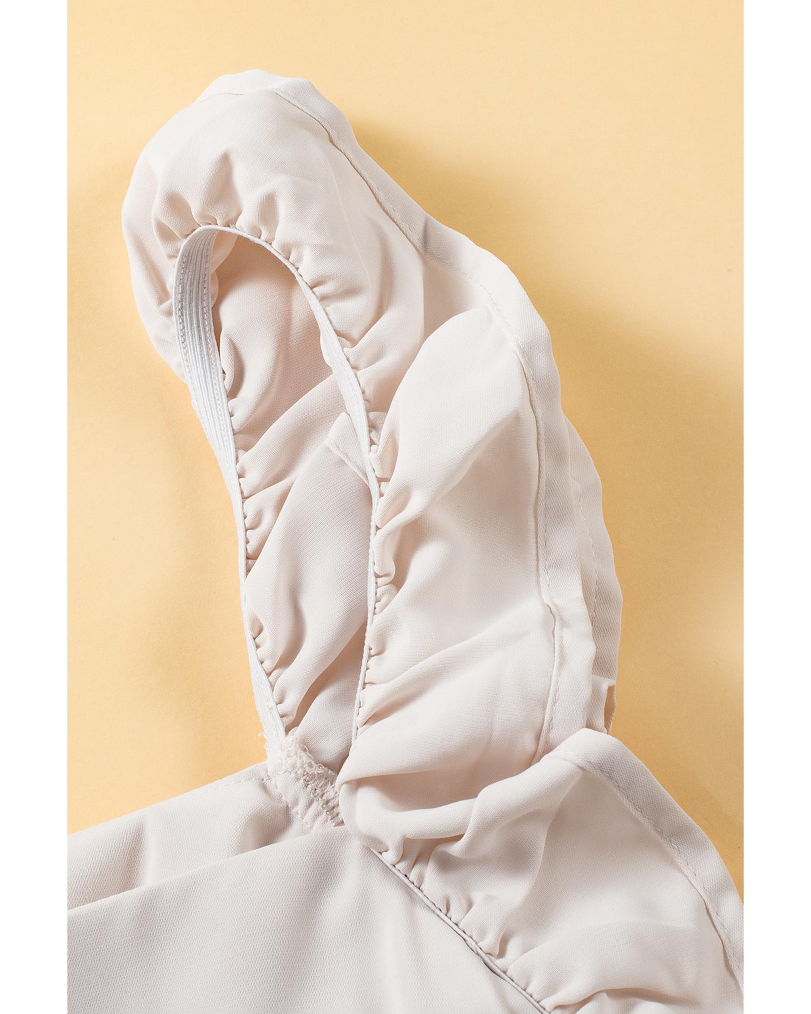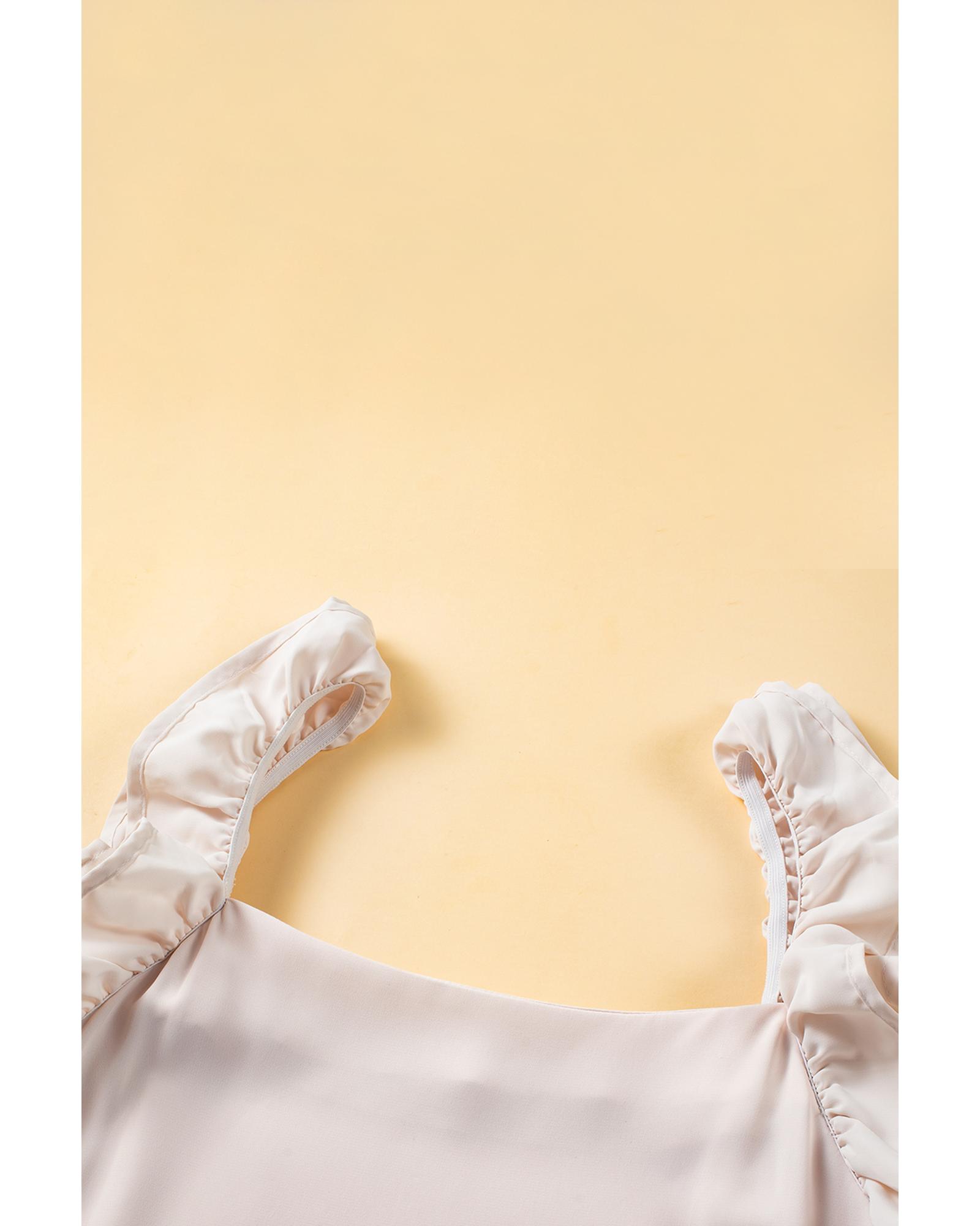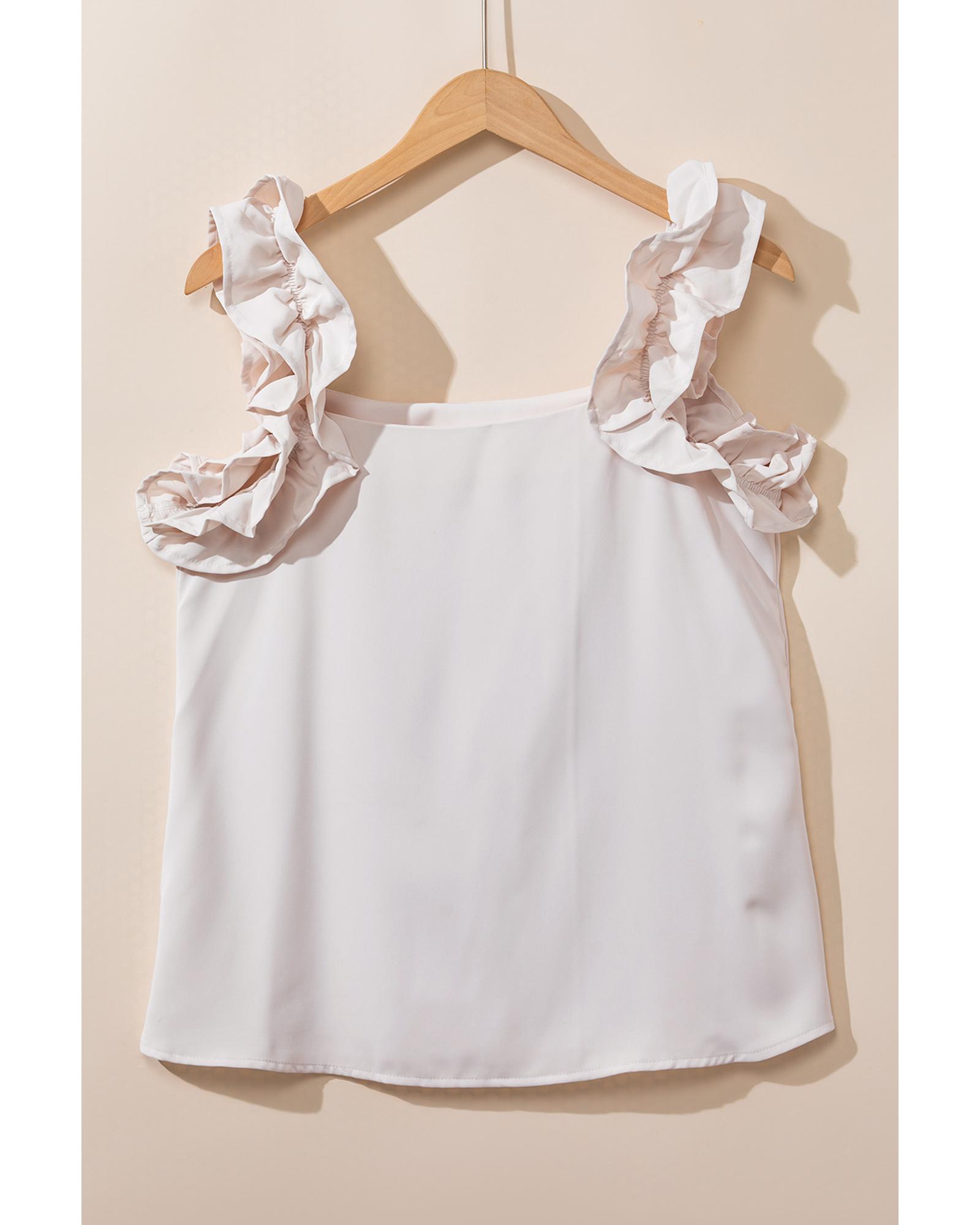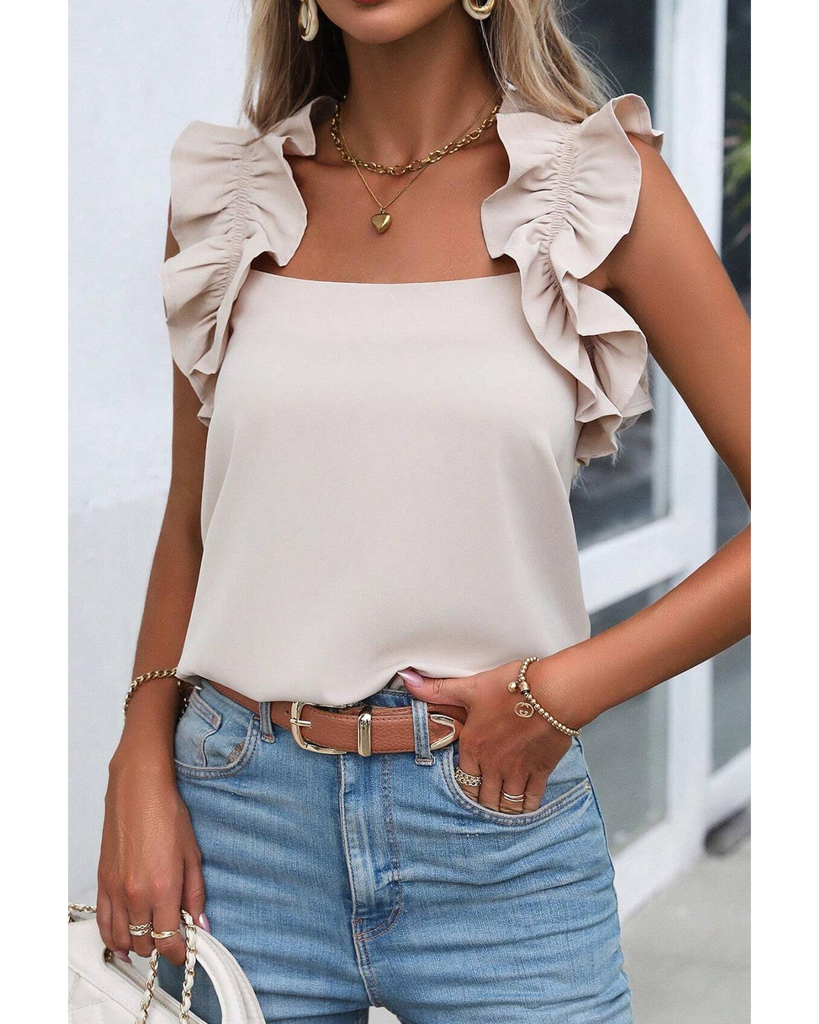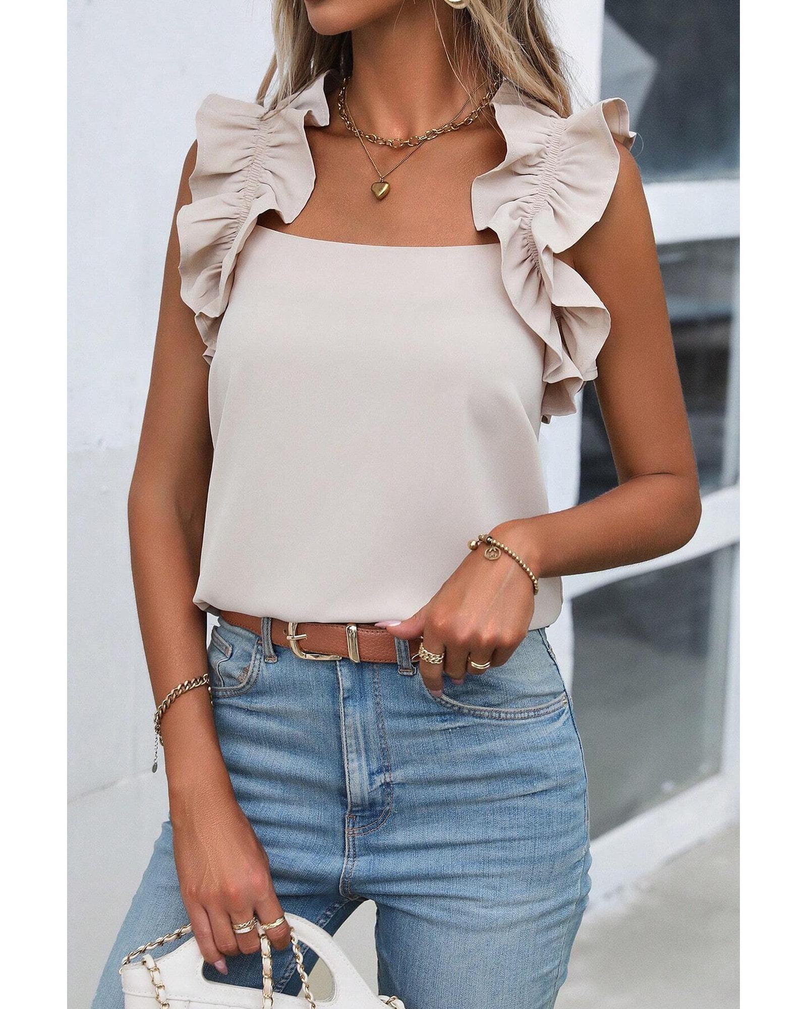 Oatmeal Solid Ruffle Trim Sleeveless Top – XL
