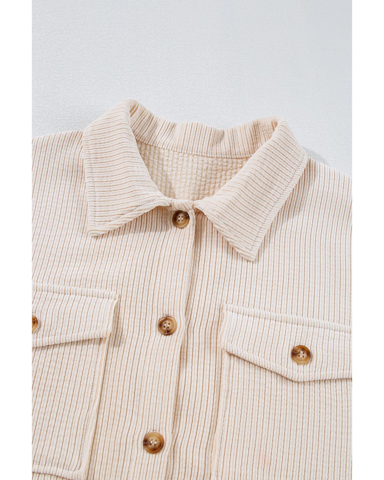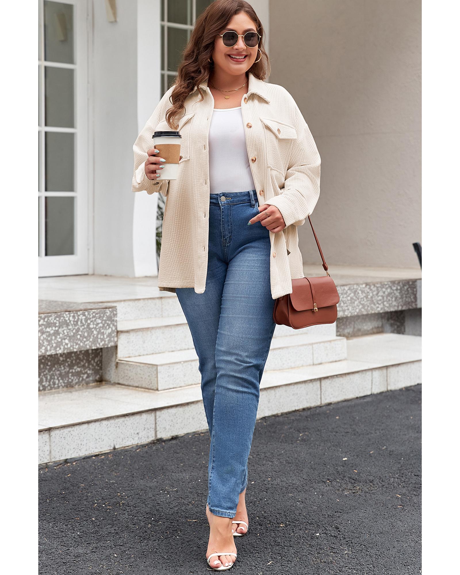 Oatmeal Textured Flap Pockets Buttoned Plus Size Shacket – 3X