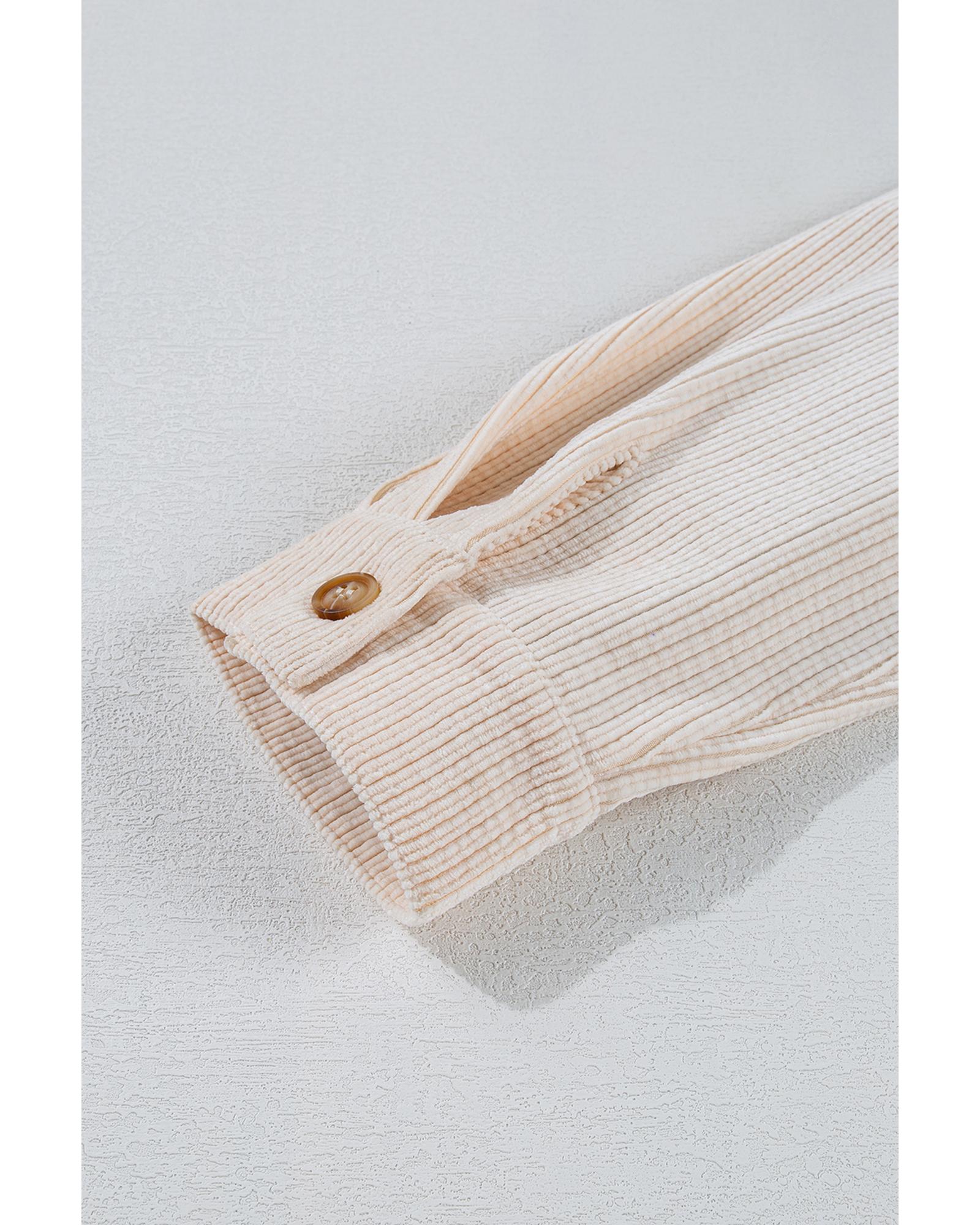 Parchment Sequin Patch Chest Pocket Corded Shacket - M