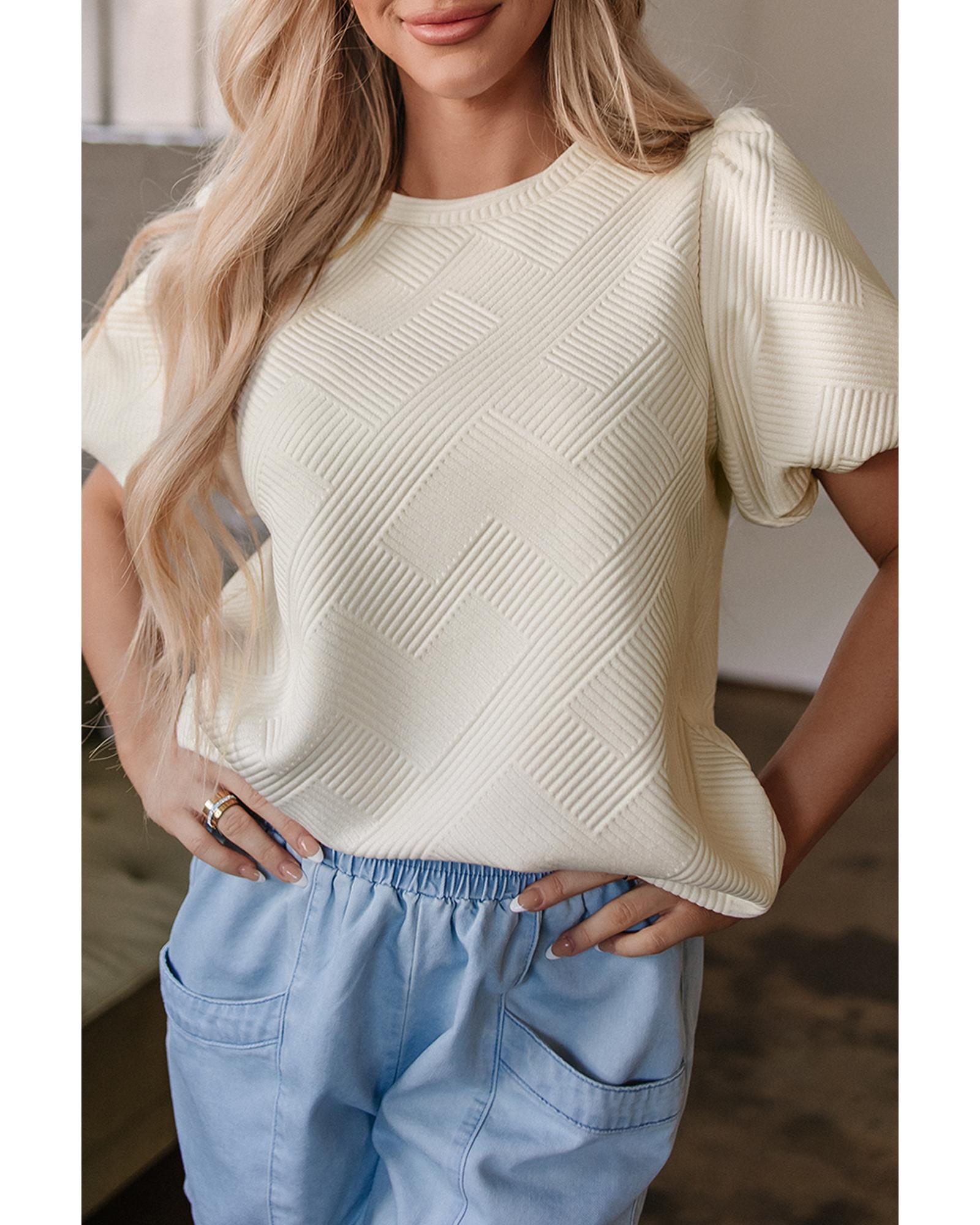 Oatmeal Textured Puff Sleeve T-shirt – M