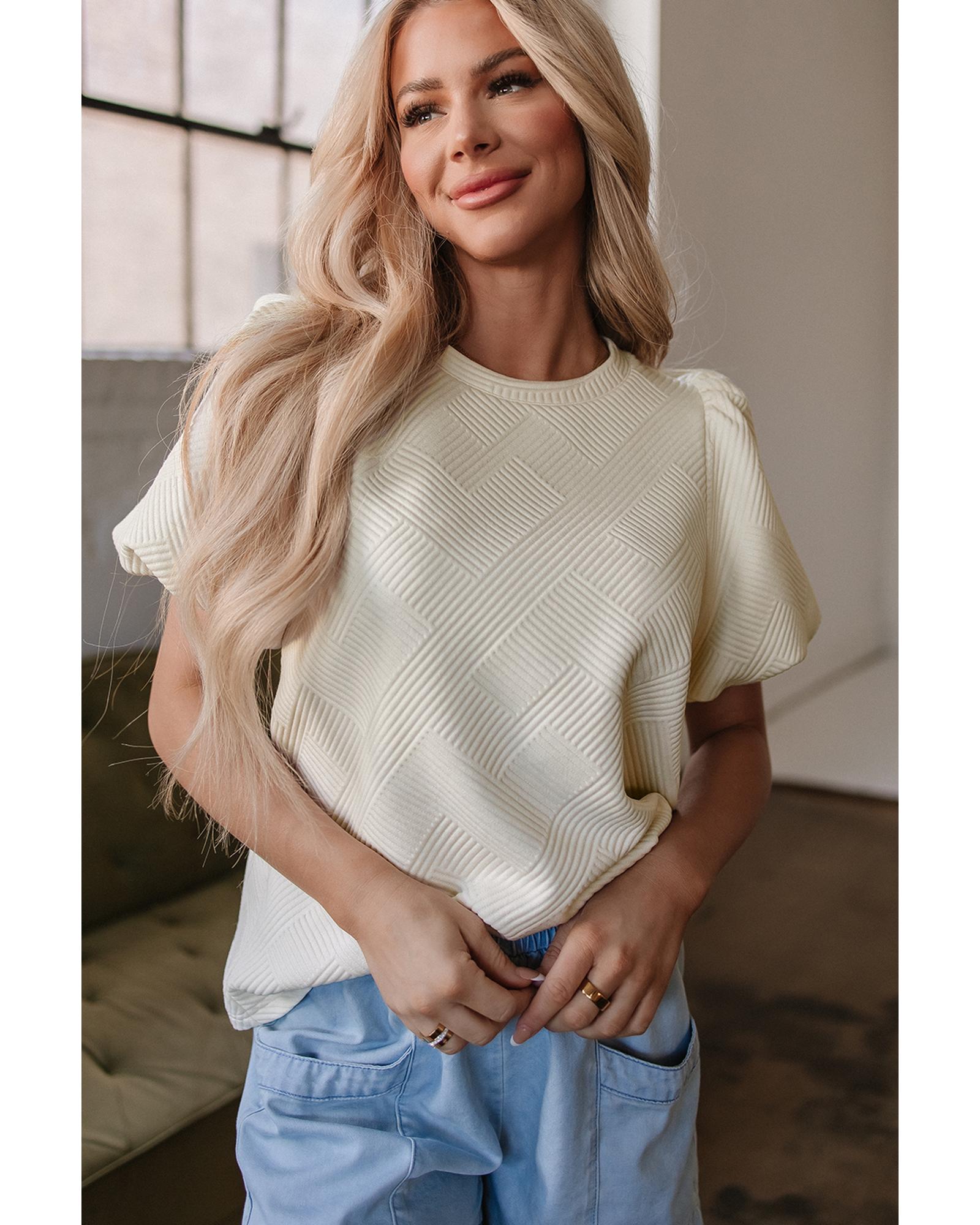 Oatmeal Textured Puff Sleeve T-shirt – XL