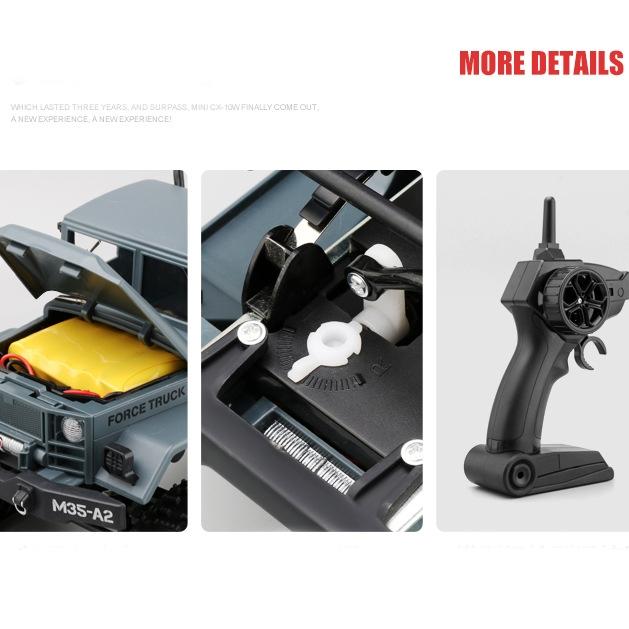 • Off-road 1:16 off-road RC truck has 2.4G transmitter. With the 4-wheel universal drive shaft and metal frame that allow it to load heavy things. In addition, equipped with the wear-resistant TPR tires, the RC vehicle excels in running on uneven roads