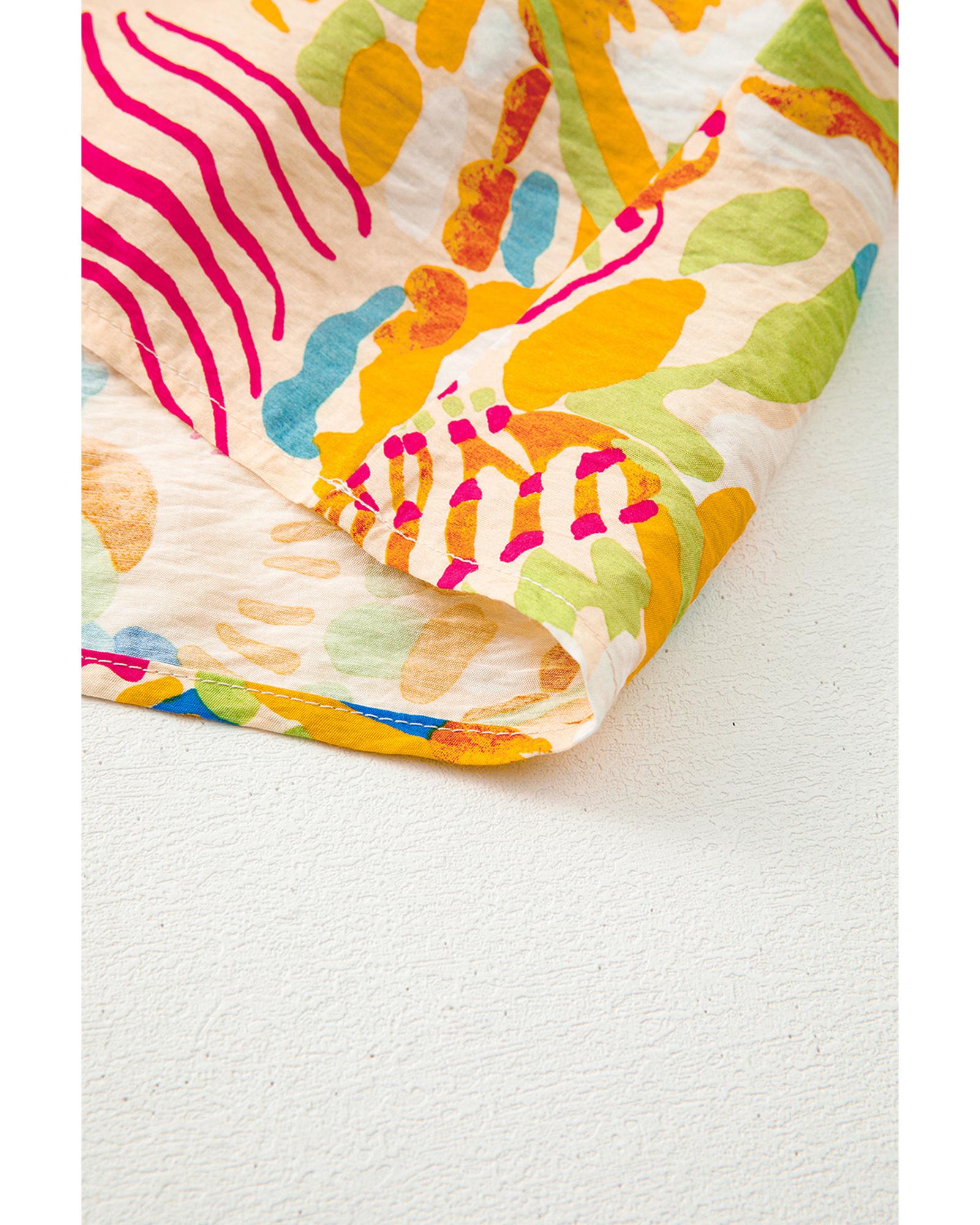Orange Floral Print Flounce Sleeve Buttoned Front Mini Dress - S