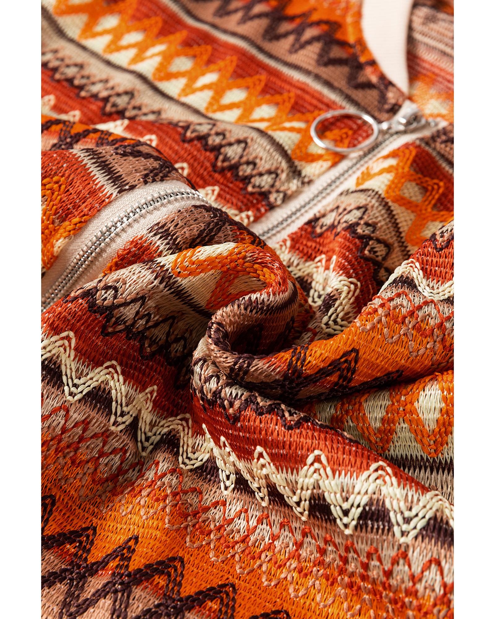 Orange Boho Striped Zip Up Long Sleeve Jacket – S