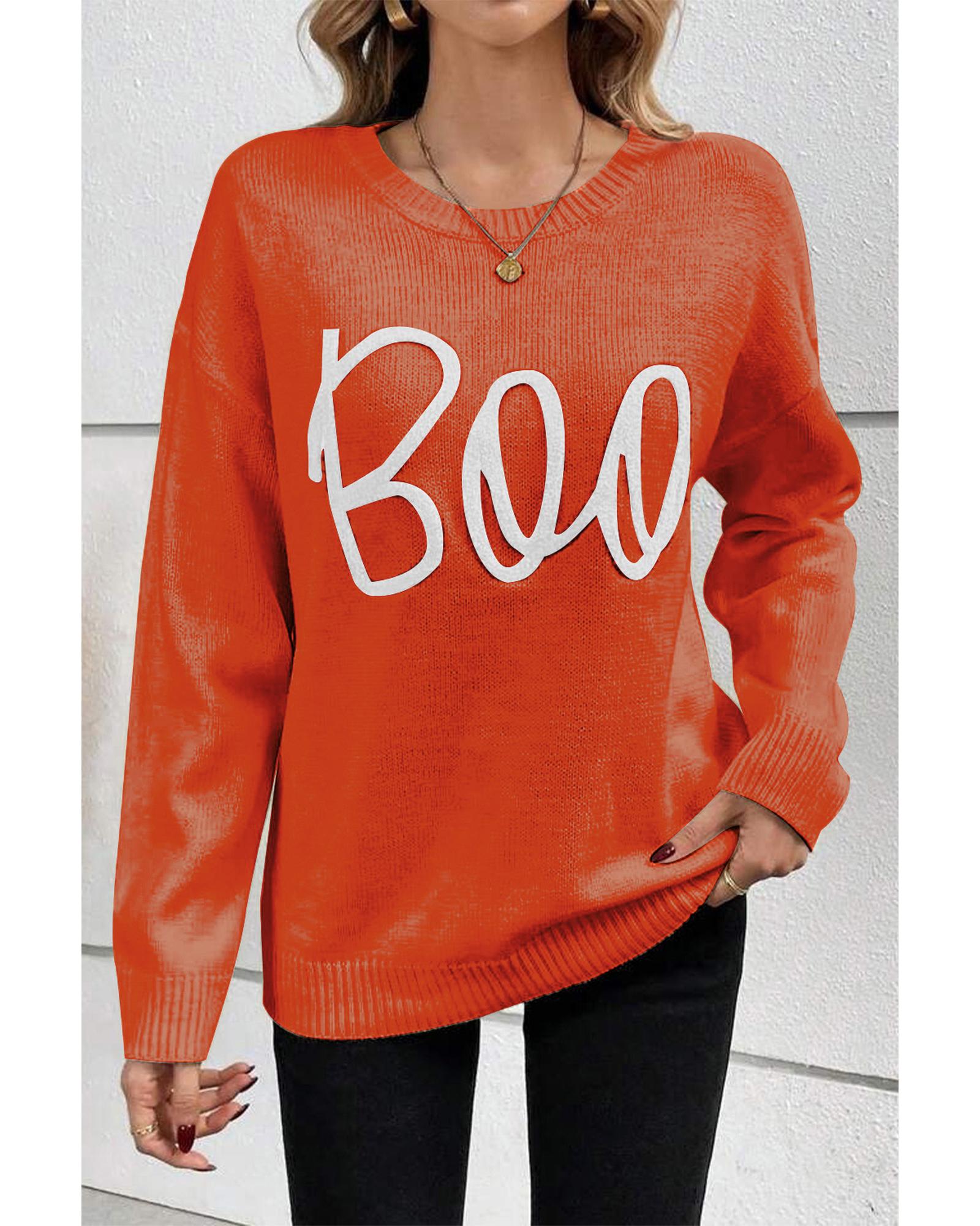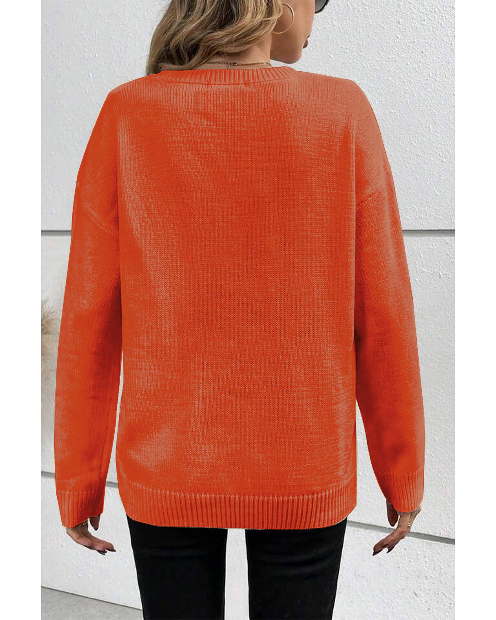 Orange Boo Knitted Pattern Ribbed Edge Drop Shoulder Sweater – 2XL