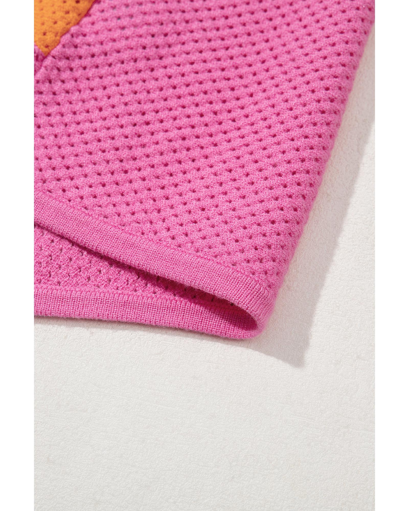 Orange Color Block Eyelet Casual Sweater T Shirt – XL