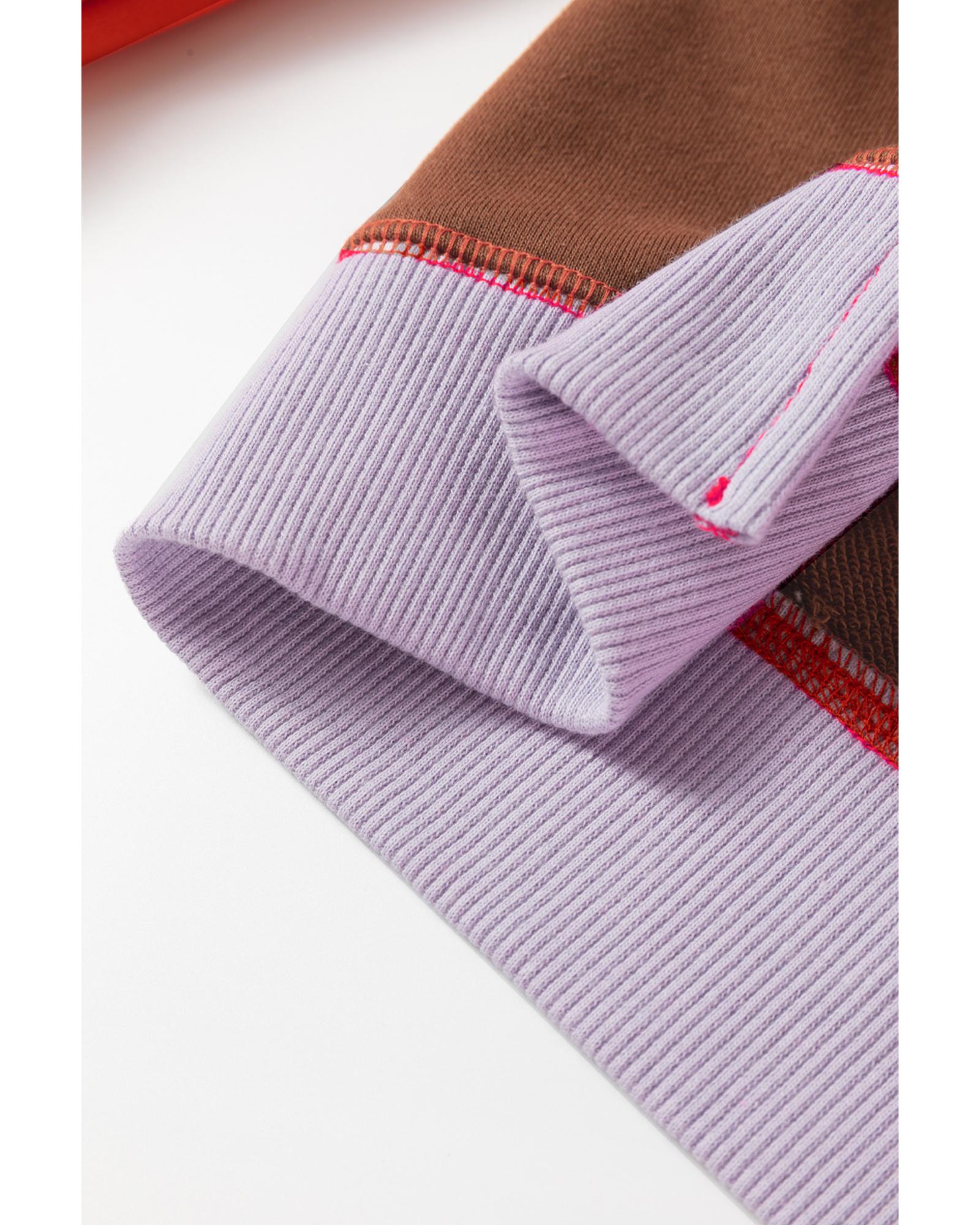 Orange Color Block Side Slits Raglan Sleeve Loose Fit Top – L