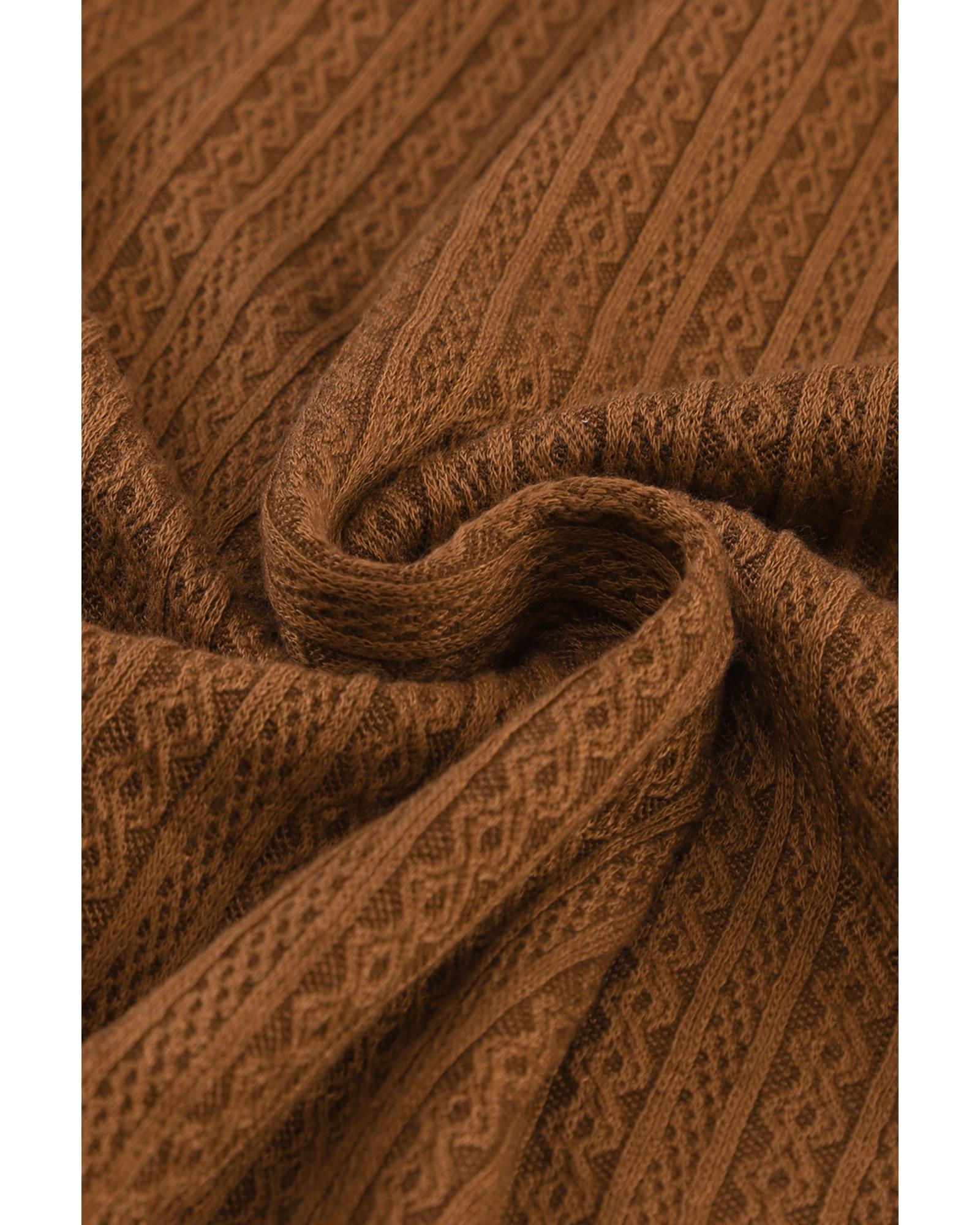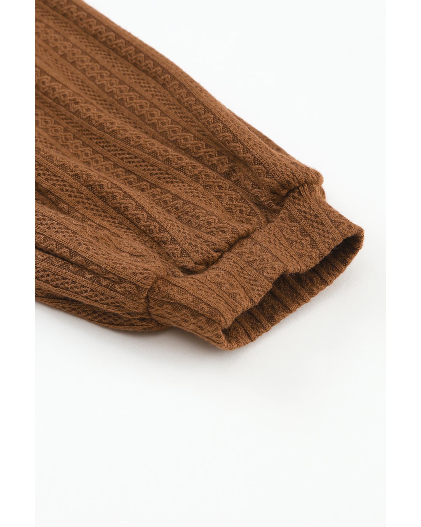 Orange Faux Knit Jacquard Puffy Long Sleeve Top – S