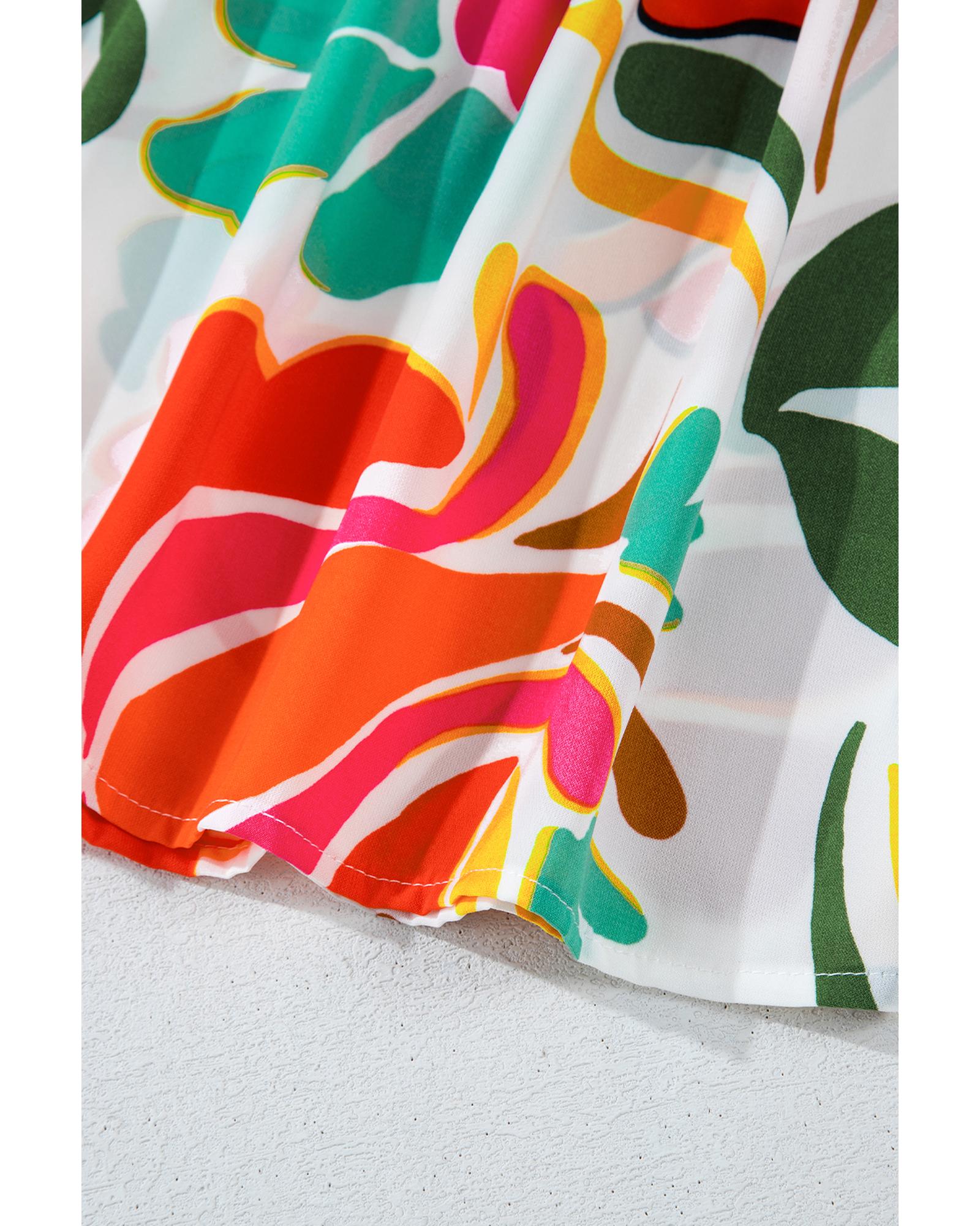 Orange Floral Print Drawstring V Neck Tiered Plus Size Dress – 1X