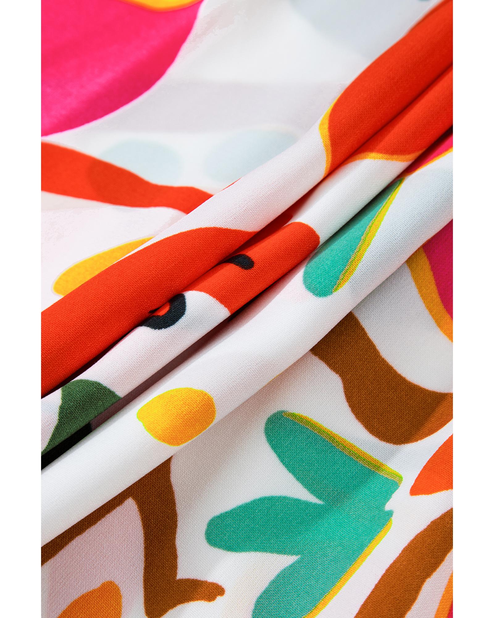 Orange Floral Print Drawstring V Neck Tiered Plus Size Dress – 4X
