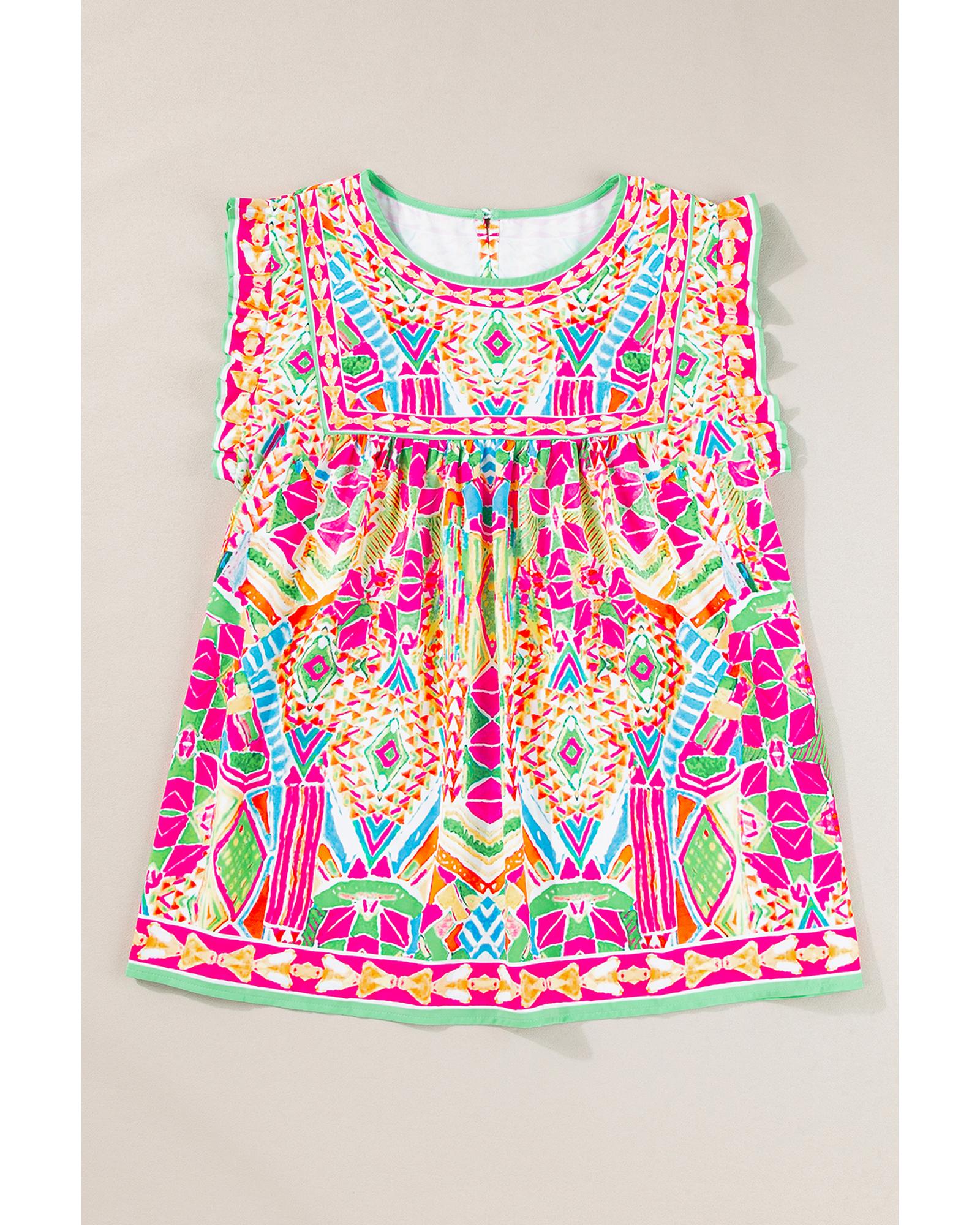 Orange Geometric Print Ruffled Trim Tank Top – M