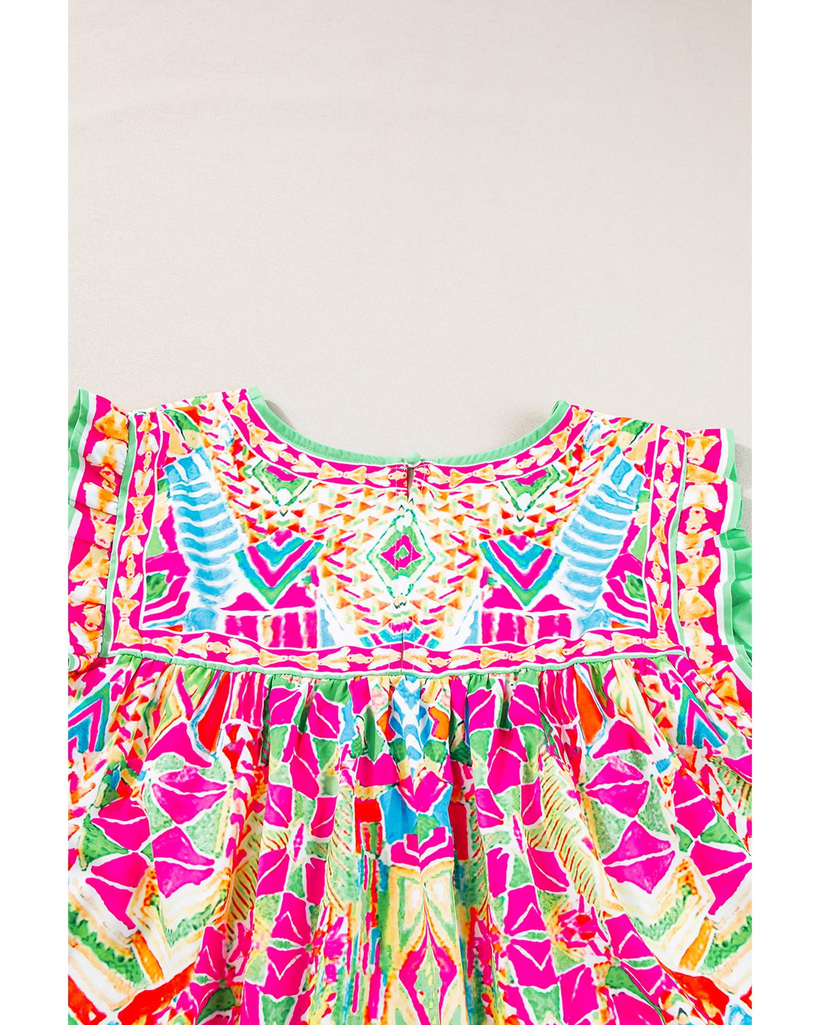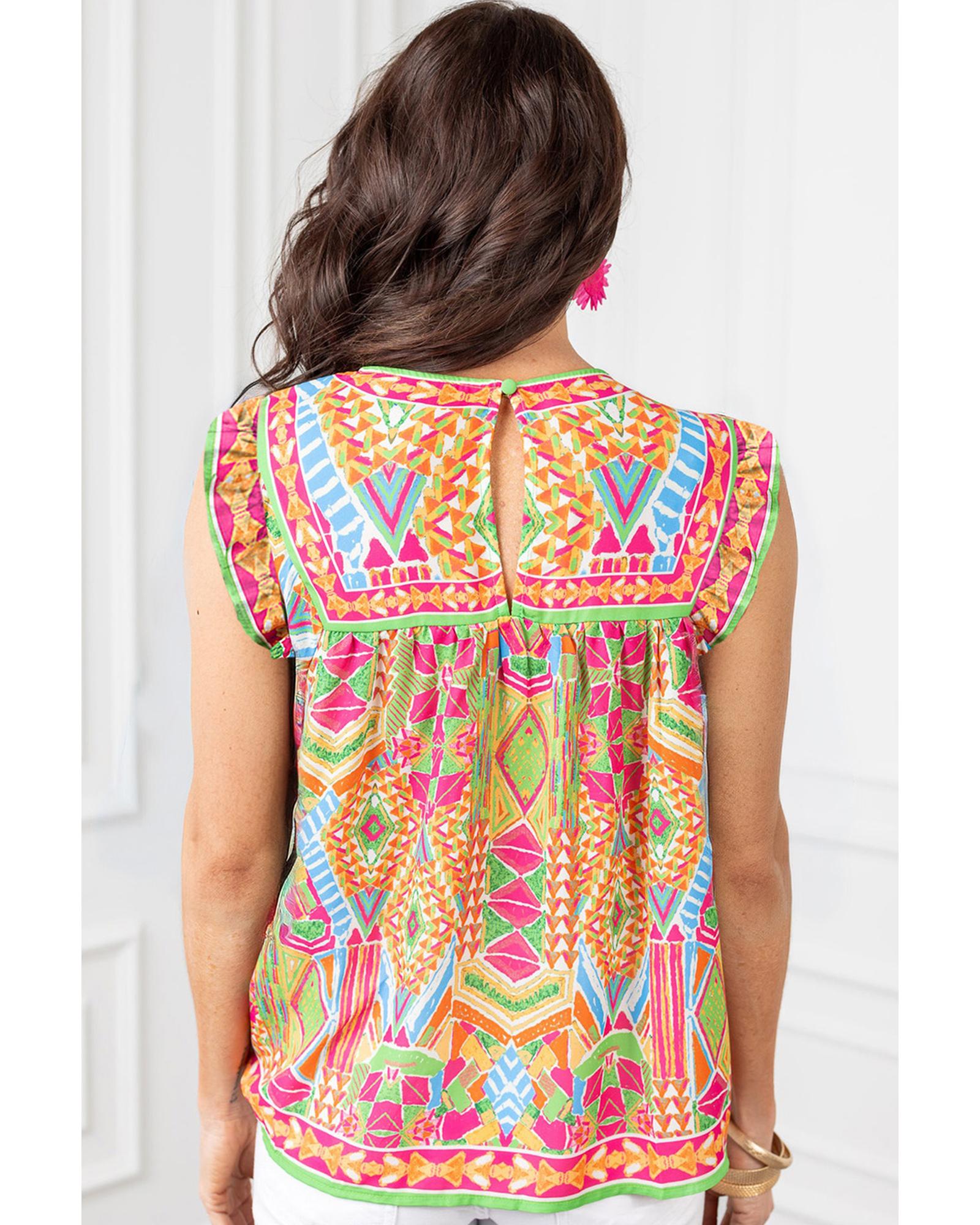 Orange Geometric Print Ruffled Trim Tank Top – S