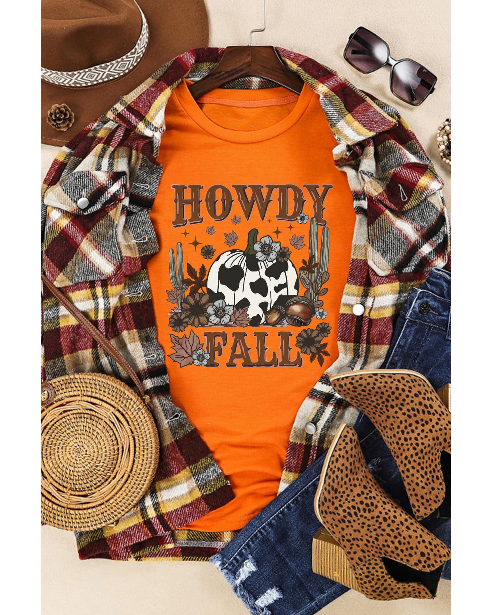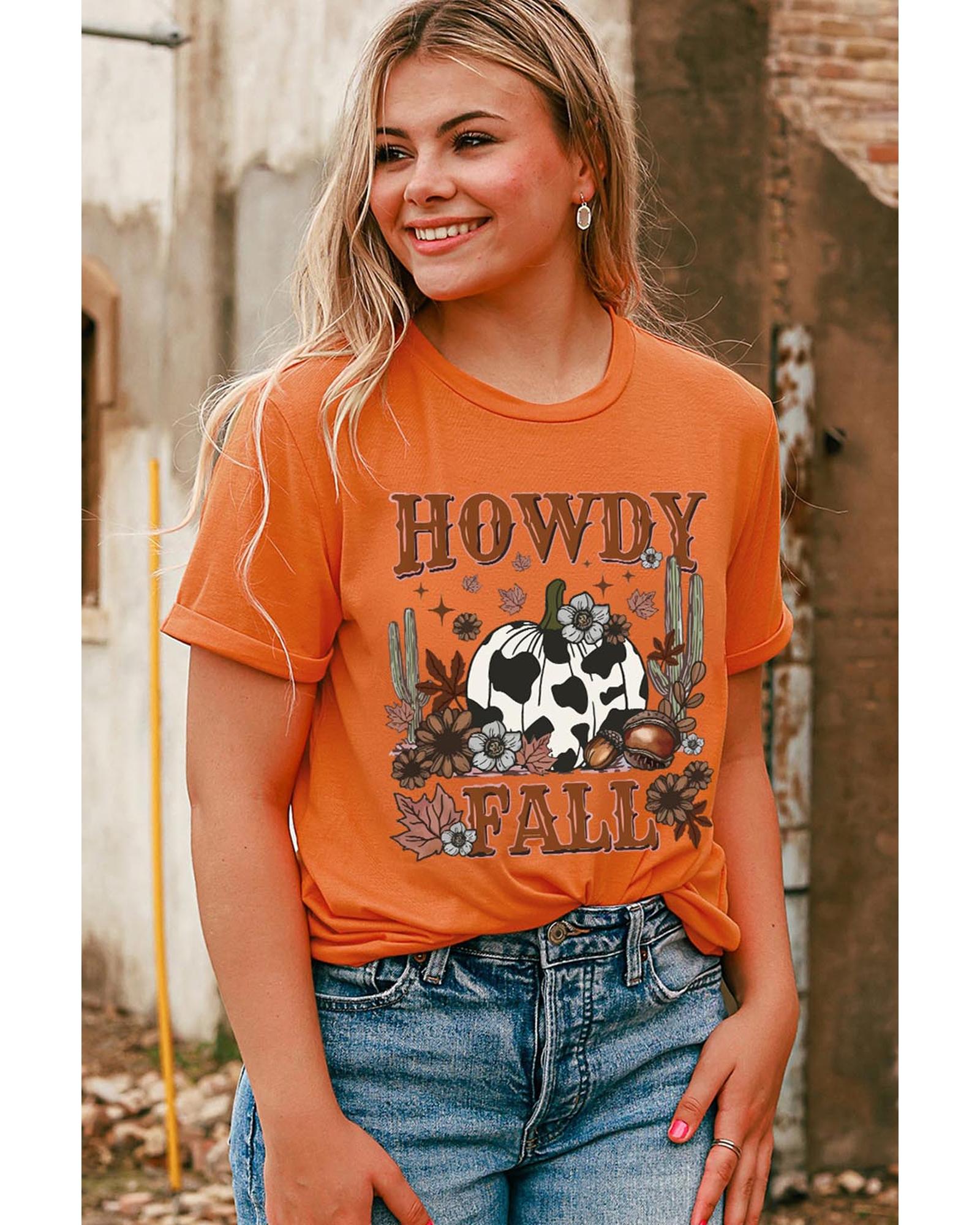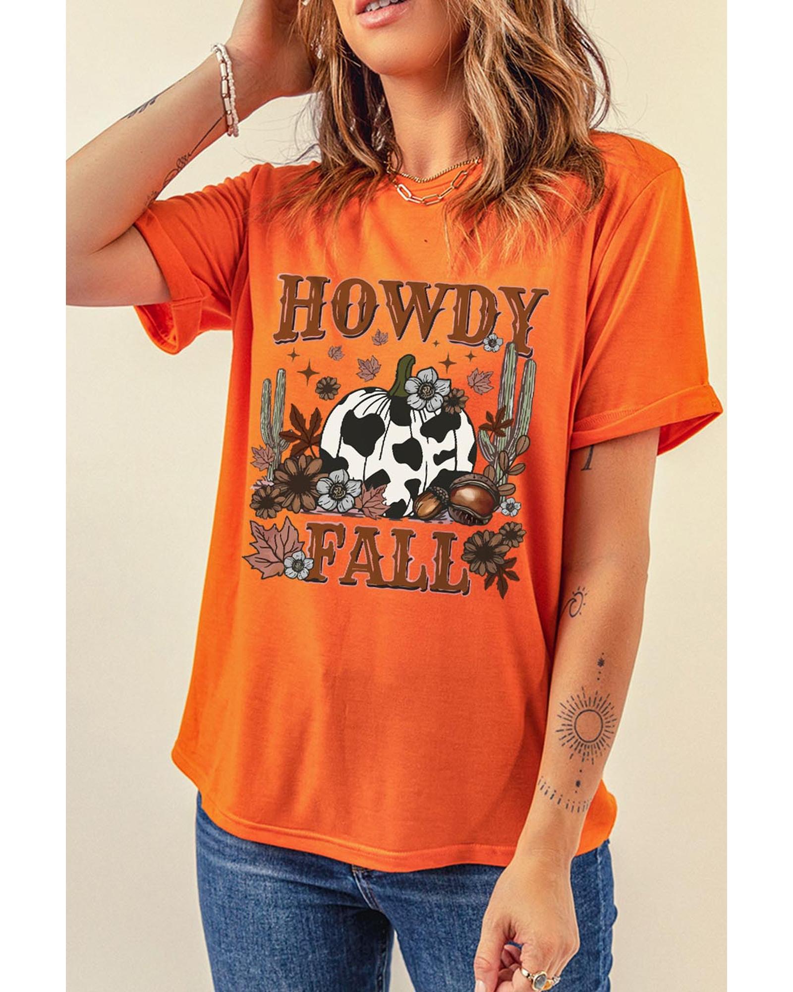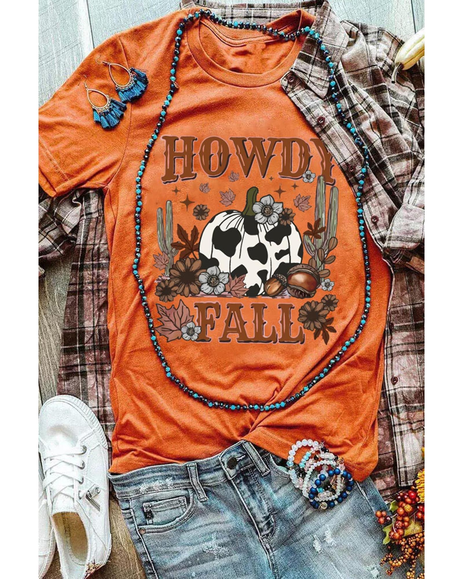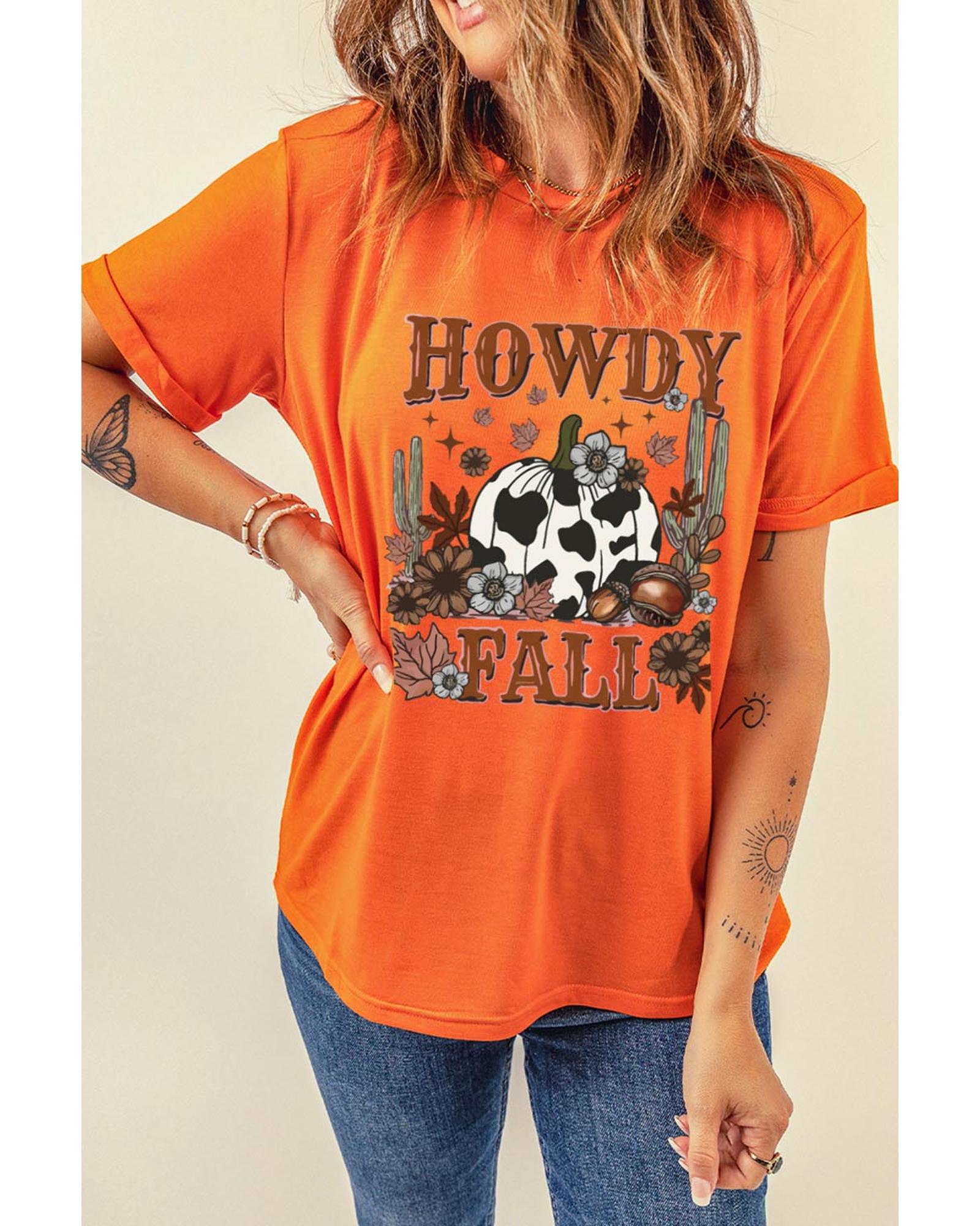 Orange HOWDY FALL Western Pumpkin Graphic T Shirt – S